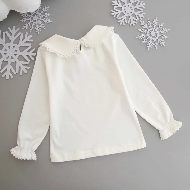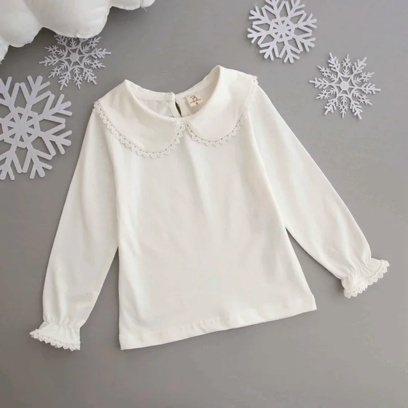 Наименование товара: детские белые рубашки для маленьких девочек; Блузки с длинными рукавами и рюшами и кукольным воротником для девочек; Осенняя детская школьная одежда; Милые топы для малышей