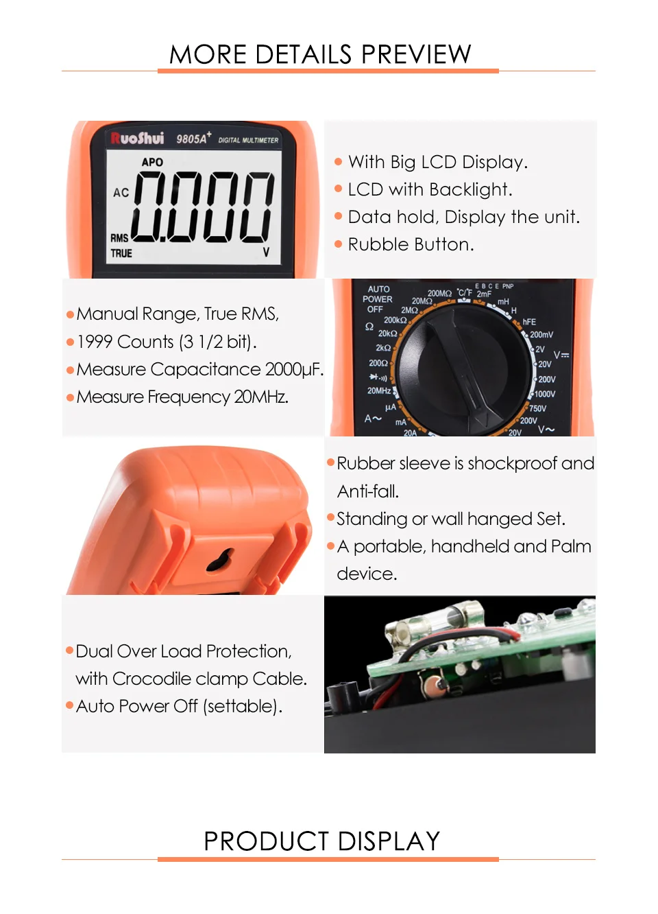 RuoShui VC980 серия (VC9801A +, RuoShui 9804A +,VC9807A +, RuoShui 9808 +) Настоящий RMS мультиметровый Цифровой мультиметр ручное сопротивление емкостной температуры транзистора Электрический тестер.