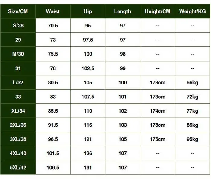Таблица размеров