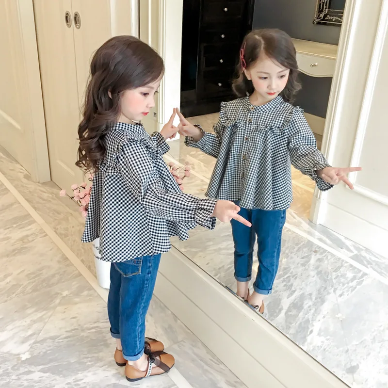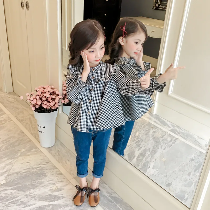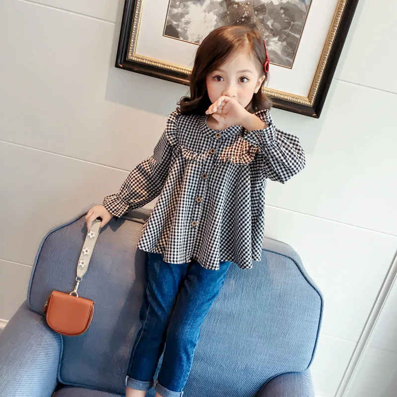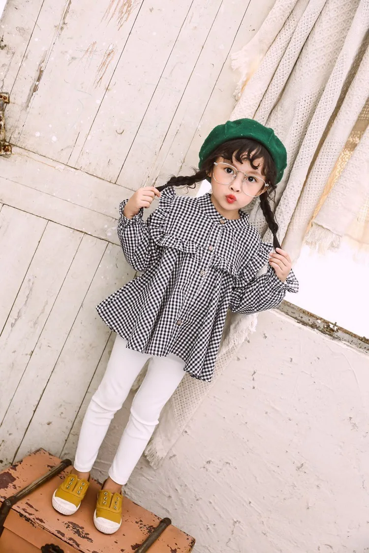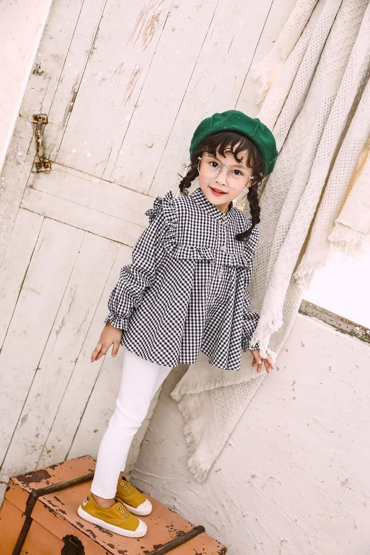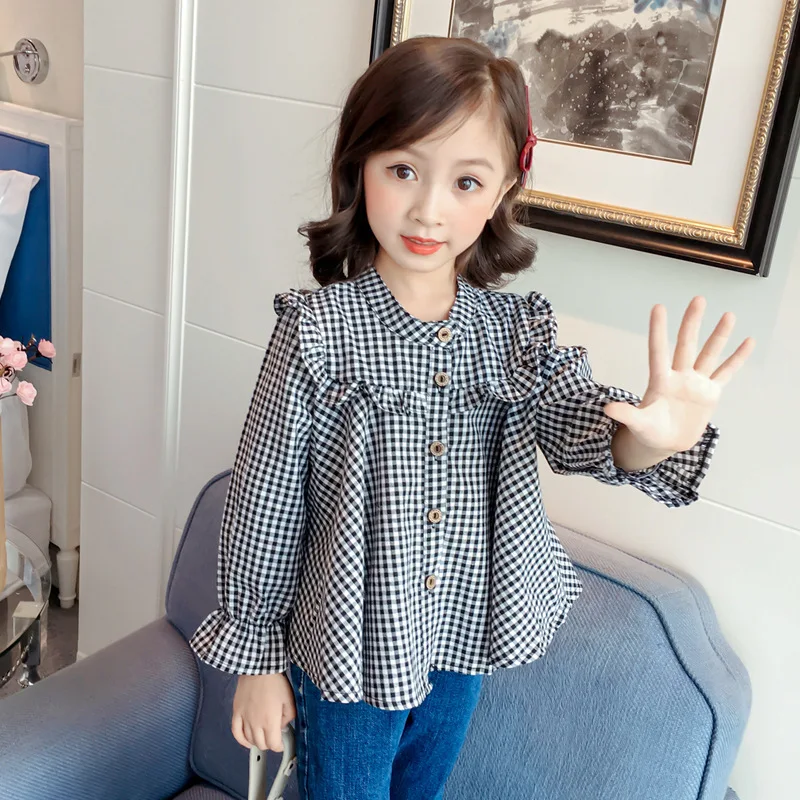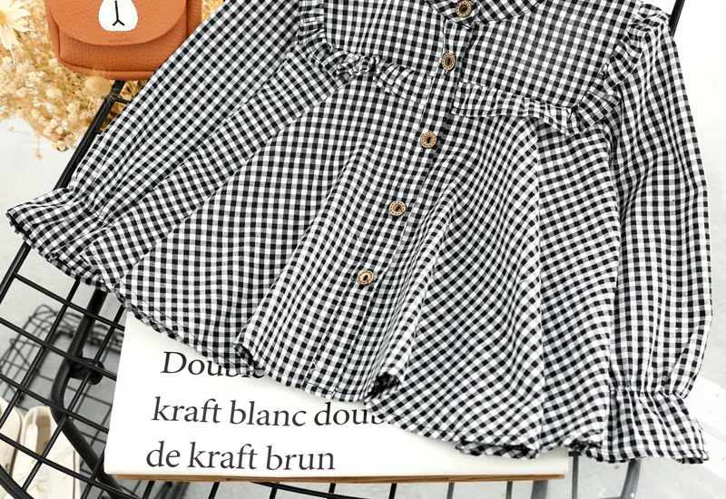 Новинка весна-лето 2020 рубашка для девочек черно-белая с отложным воротником и