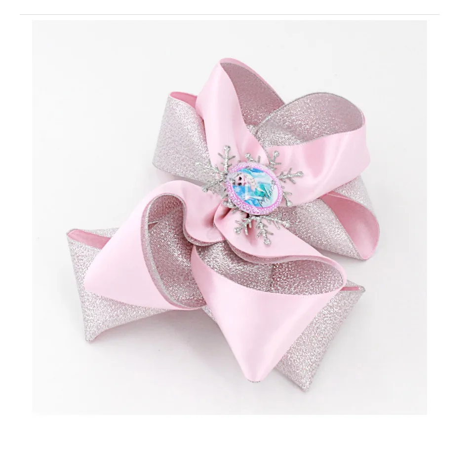 FQIQI 6 Дюймов Большой Ленты Эльза Анна Розовый Ручной работы Волос Лук Клипы