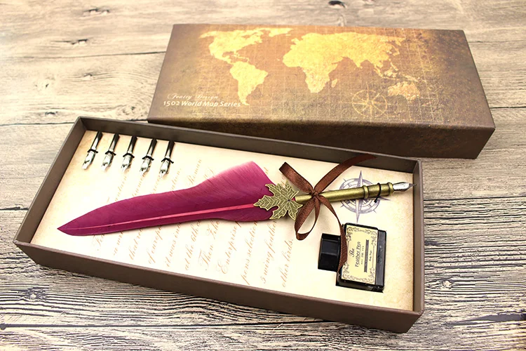 1) Подарочная коробка: 26 см * 13,5 см * 4 см 1 набор (1 перо + 1 пустая бутылка с чернилами + 6 перьев + 1 подарочная коробка) 2) Размер продукта: длина ручки около 25 см