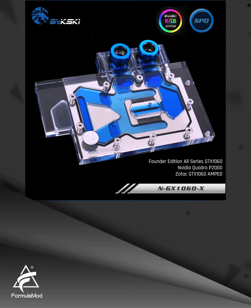 Конструкция водоблока предусматривает микро-каналы диаметром 0,5 мм, обеспечивающие повышенную производительность! Прямое охлаждение основных нагревающихся элементов графического ядра (ГП), памяти (ОЗУ) и питания видеокарты (VRM) обеспечивает стабильность игр и разгона процессора с поддержанием превосходной температуры. Нижняя часть головок водяного охлаждения изготовлена из меди высокой чистоты и покрыта антиокислительной пленкой, которая придает головке с водяным охлаждением исключительный внешний вид. Крышка изготовлена из высококачественного полиформальдегида для обеспечения длительной эксплуатации, а также качественного охлаждения и износостойкости головки. Материалы уплотнения имеют высокую стойкость к усталостным разрушениям, обеспечивая качественную герметизацию головок водяного охлаждения. Водоблоки видеокарты предусматривают свободное изменение направления, обеспечивая игрокам простоту сборки SLI-системы, как последовательной, так и параллельной. Поддерживаемая модель: Основатель серии все серии GTX1060 Nvida Quadro P2000 Zotac GTX1060 AMPEDПеречень компонентов: