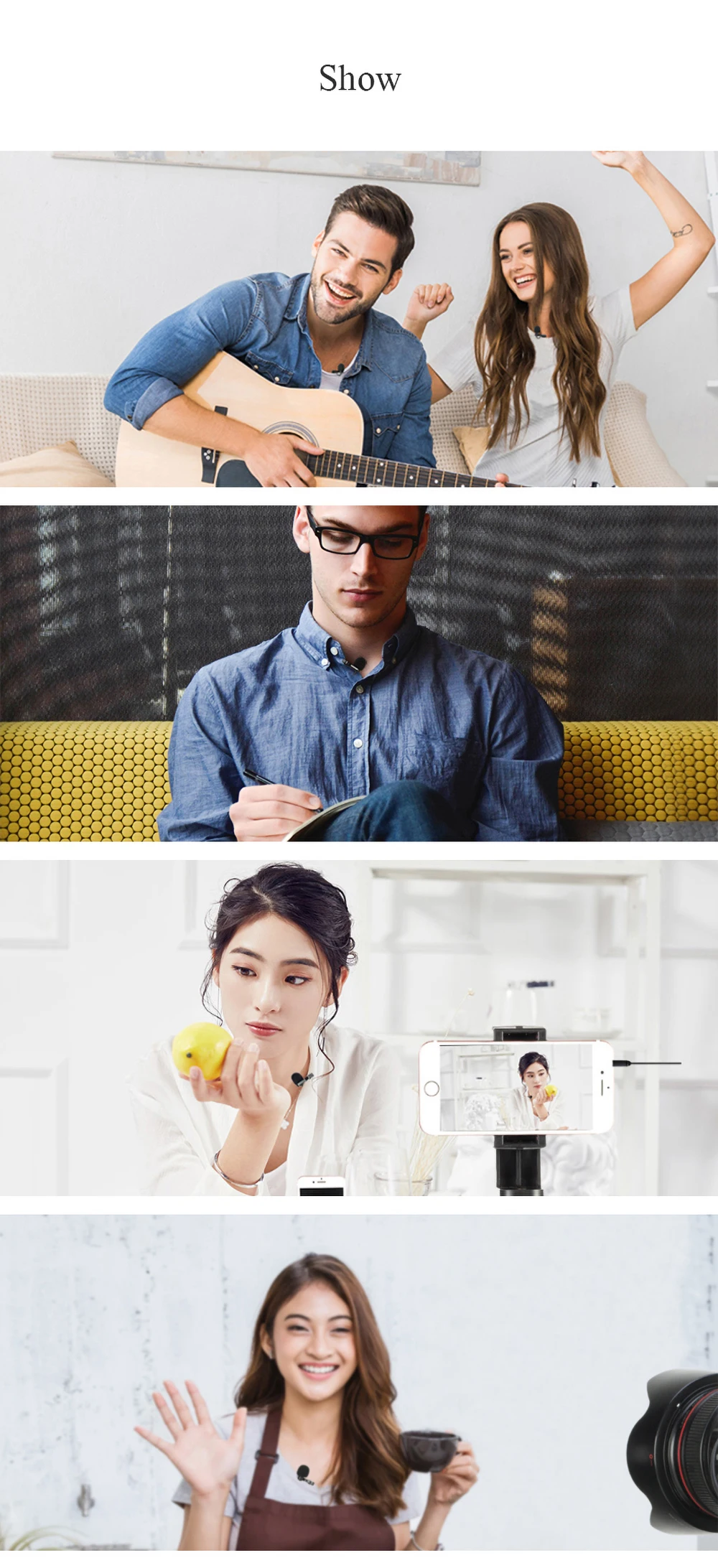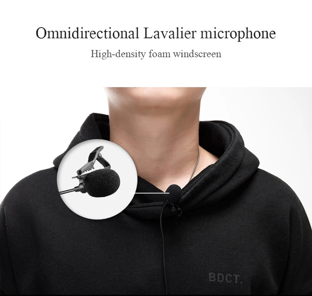 Универсальный микрофон lavalier предназначен для смартфонов, DSLR, видеокамер, аудиомагнитол, ПК и т. д. он предназначен для надежной и беспроблемной производительности, идеально подходит для использования в видео. Микрофон lavalier имеет Omni pickup шаблон, для полного, 360 градусов покрытия. Это встроенный 6-метровый (20 ”) кабель с 3,5 мм 4-х полюсной золотистой вилкой, может напрямую подключаться к смартфонам, большинством камер.