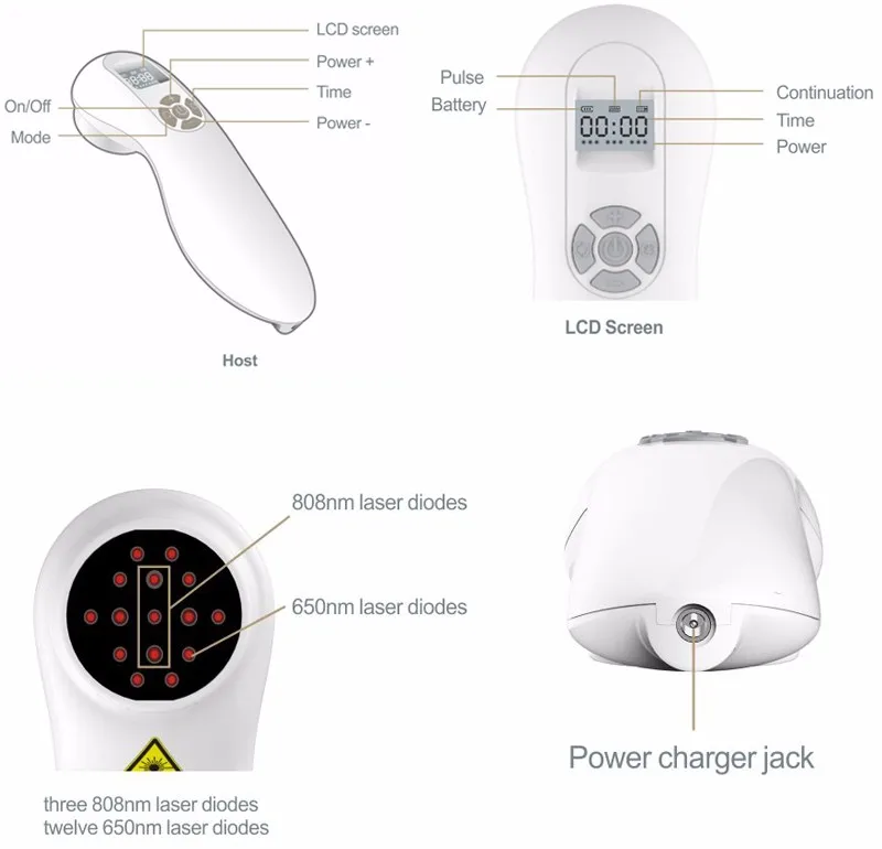 | Терминал Lasr ток на выходе: | 3 лазерных луча с 808нм, 12 лазерных лучей с 650нм |