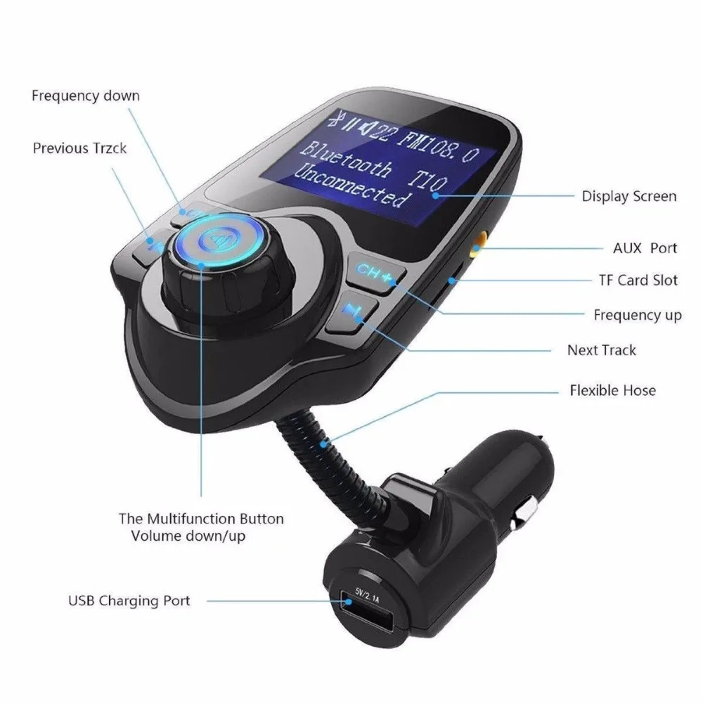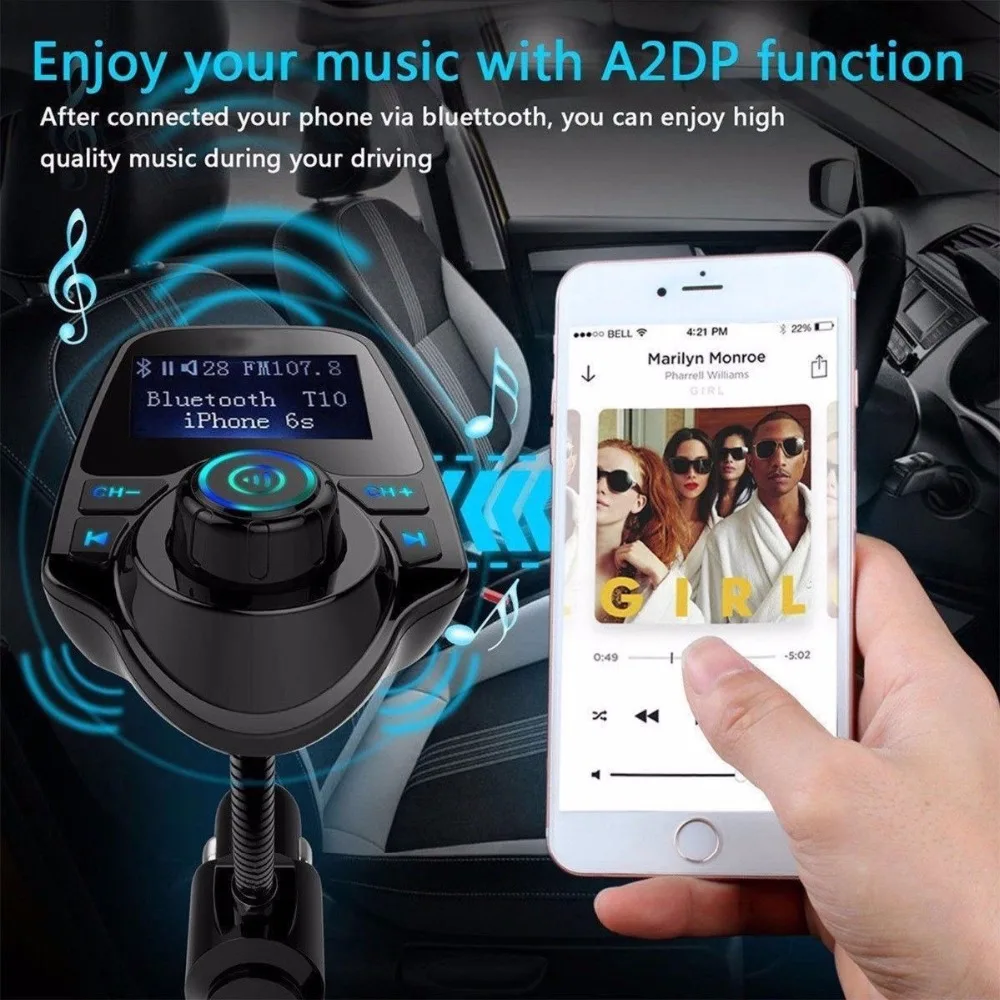 Многофункциональный автомобильный fm-передатчик WowPartPro с Bluetooth-это автомобильный комплект громкой связи. Передача сигналов Bluetooth (музыка и телефонный звонок) с устройств Bluetooth на автомобильную аудиосистему через FM, поддержка воспроизведения музыки через tf-карту, вы можете наслаждаться музыкой или отвечать на звонки своими руками из аудиосистемы автомобиля. Он также поставляется с интерфейсом USB, который излучает мощность 5 В/2,1 А.