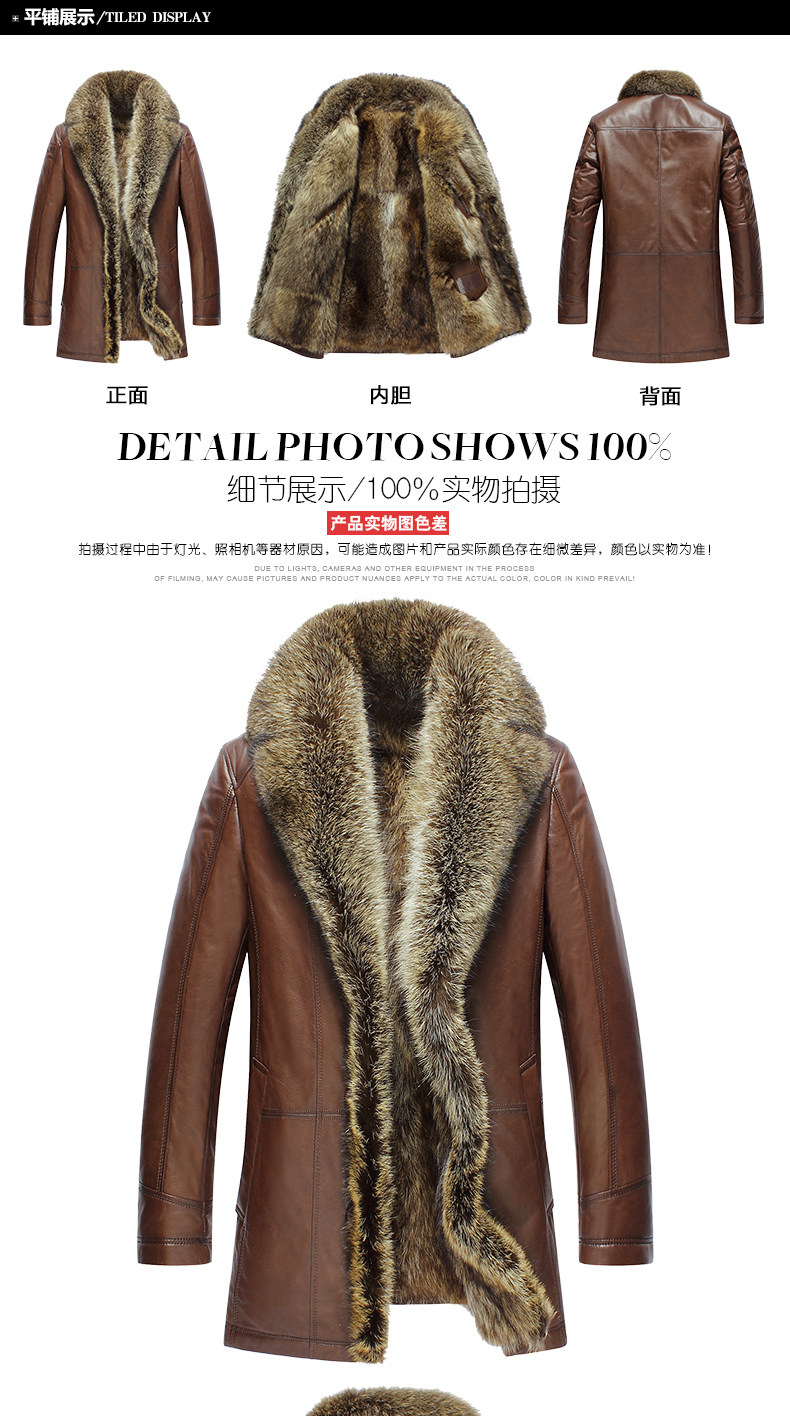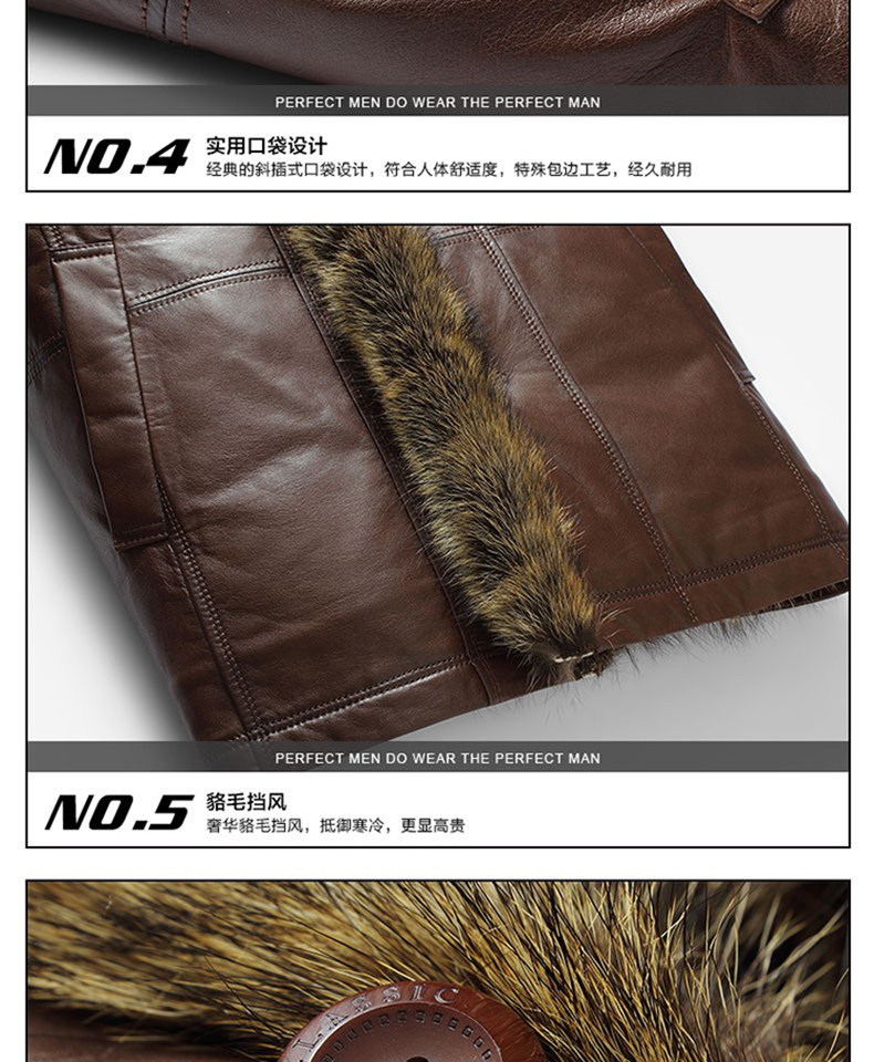 Новое поступление, первый слой, Воловья кожа, мужское кожаное пальто, высокое качество, средний длинный кожаный пуховик, мех енота, воротник, Зимняя паркаUS $1274,00