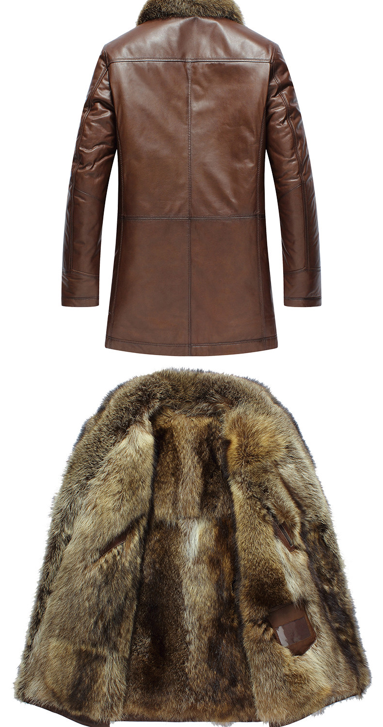 Новое поступление, мужская зимняя куртка на 90% белом утином пуху, мужское пуховое пальто из натуральной кожи, мужское длинное зимнее пальто с воротником из натурального меха енотаUS $750,00