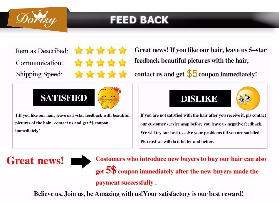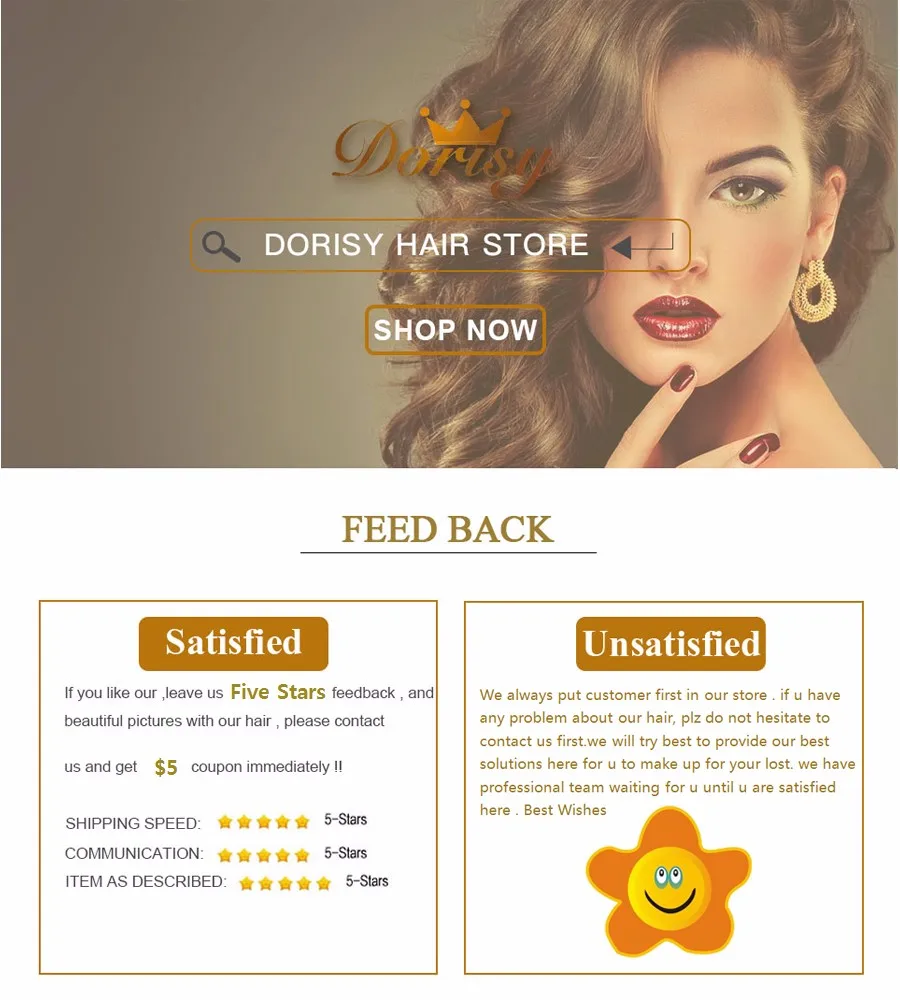 Магазина Dorisy Hair Store работает с 27.02.2018. его рейтинг составлет 89.3 баллов из 100. В избранное добавили 19880 покупателя. Средний рейтинг торваров продавца 4.6 в продаже представленно 484 наименований товаров, успешно доставлено 380 заказов. 215 покупателей оставили отзывы о продавце.