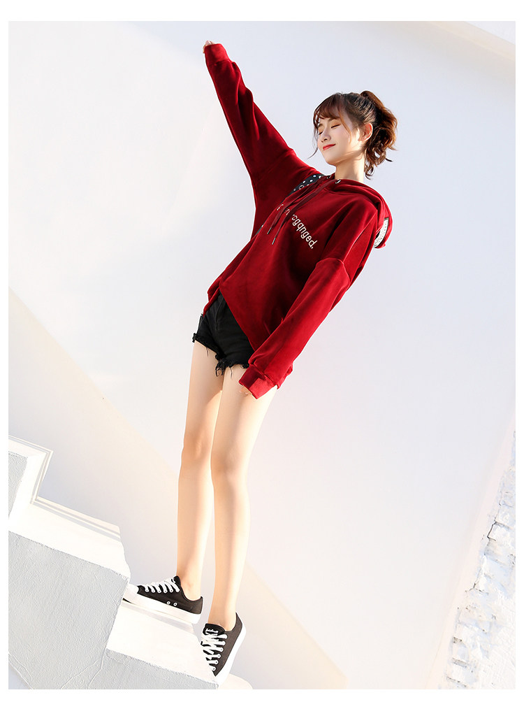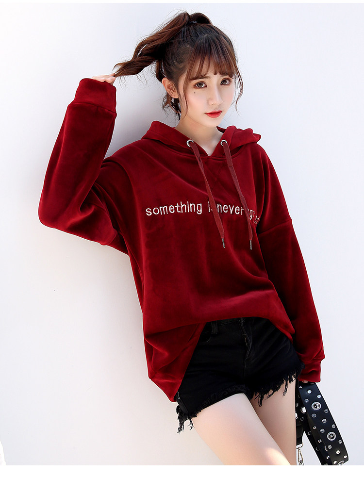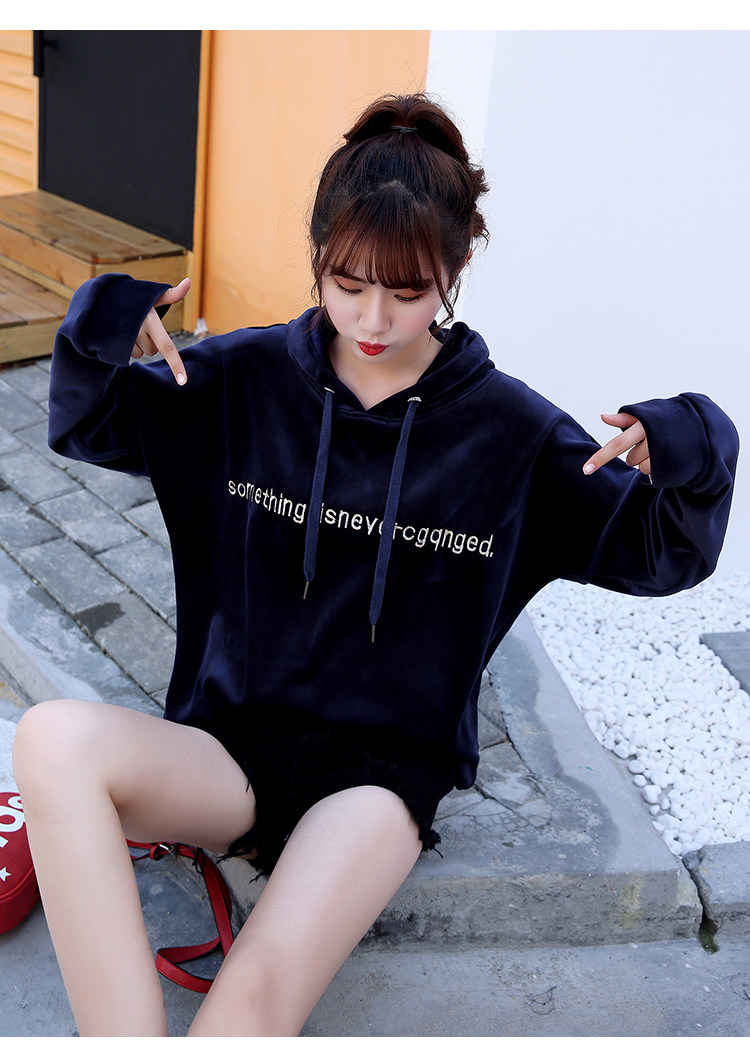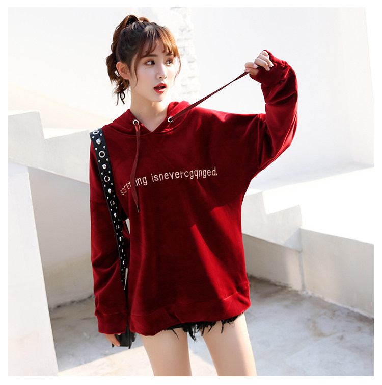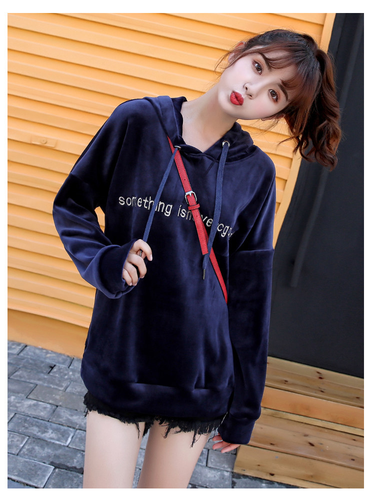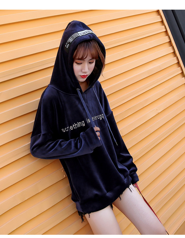 Новый 2020 на осень-зиму модные S-XL Женский Бархат письмо свободного кроя для маленьких девочек, Повседневный плащ с капюшоном плотная Толстовка для женщин красного и темно-синего цвета для детей