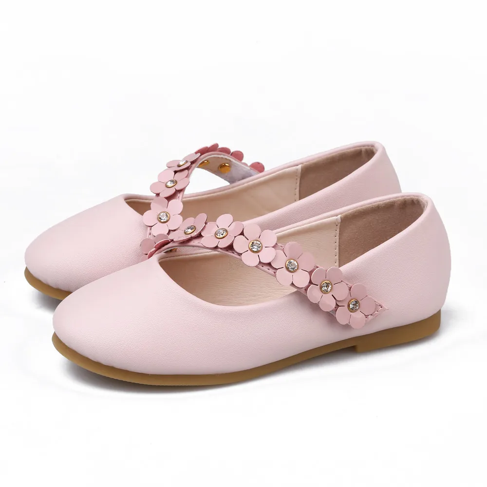 Туфли для девочек с цветами однотонная повседневная обувь на плоской подошве