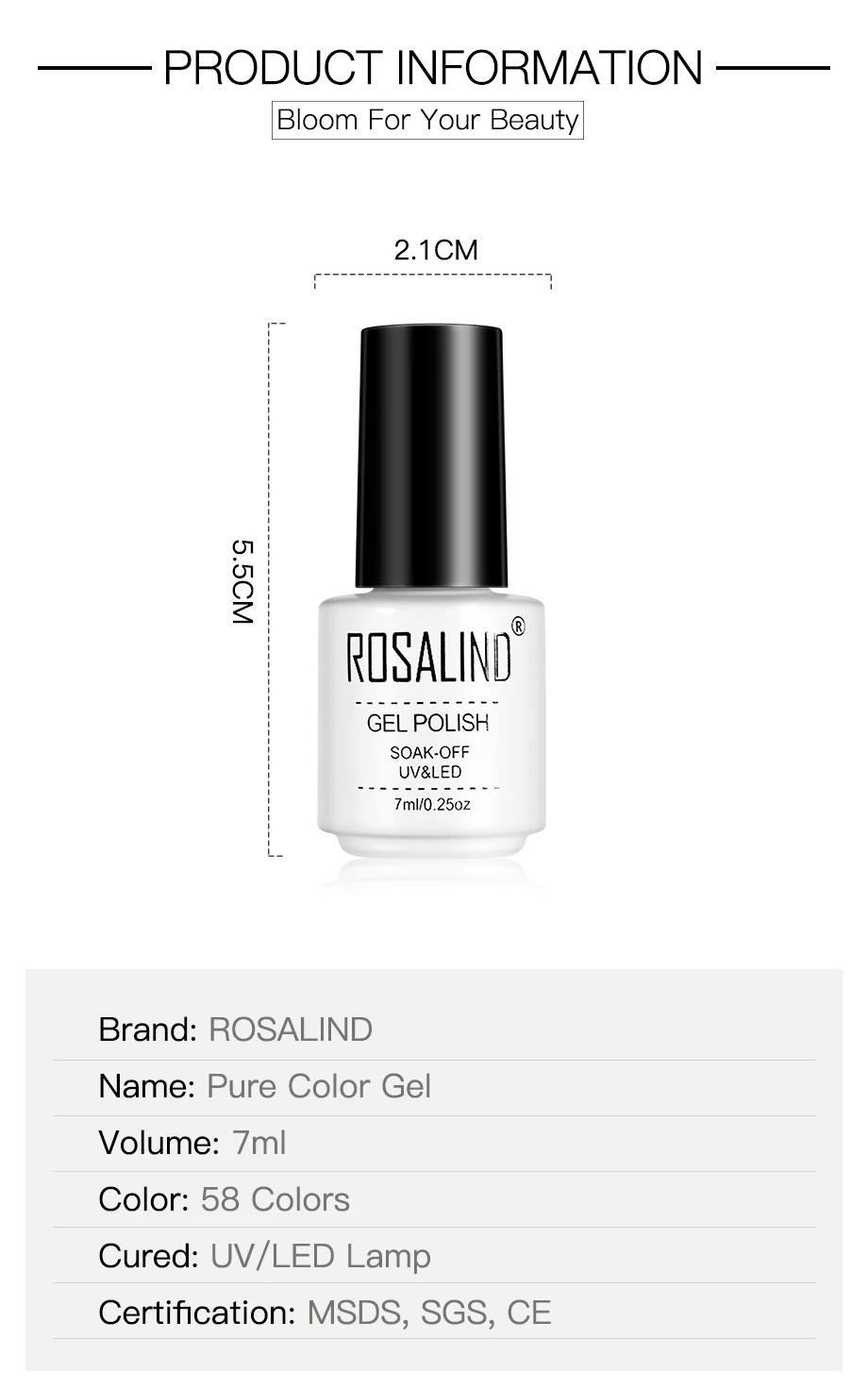 ROSALIND 58 шт./лот набор гель-лаков для маникюра Набор чистый цвет серия УФ светодиодная лампа гель лаки для наращивания ногтей праймер Топы