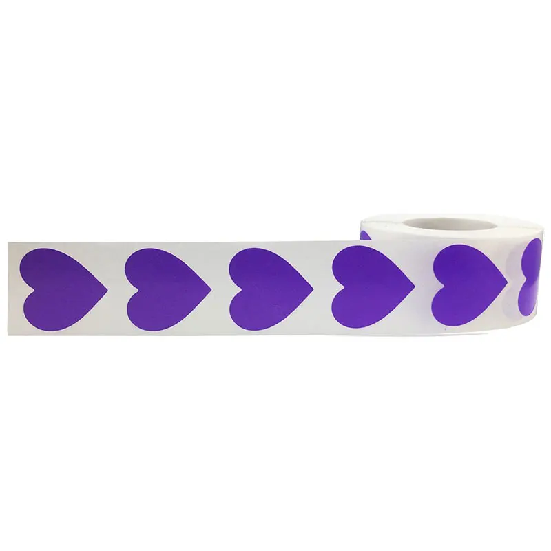 Фиолетовые наклейки с сердечками 2 "наклейки с сердечками 500 в рулоне (1 рулон)-натуральные фиолетовые бумажные наклейки с цветной печатью