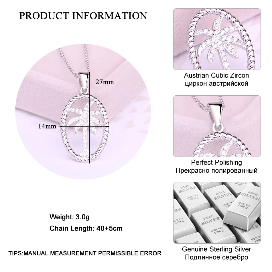 Женское Ожерелье с кулоном LADYCHIC, из настоящего твердого стерлингового серебра 925 пробы с кокосовой пальмой, модный уникальный дизайн, изысканные ювелирные изделия LNS1022