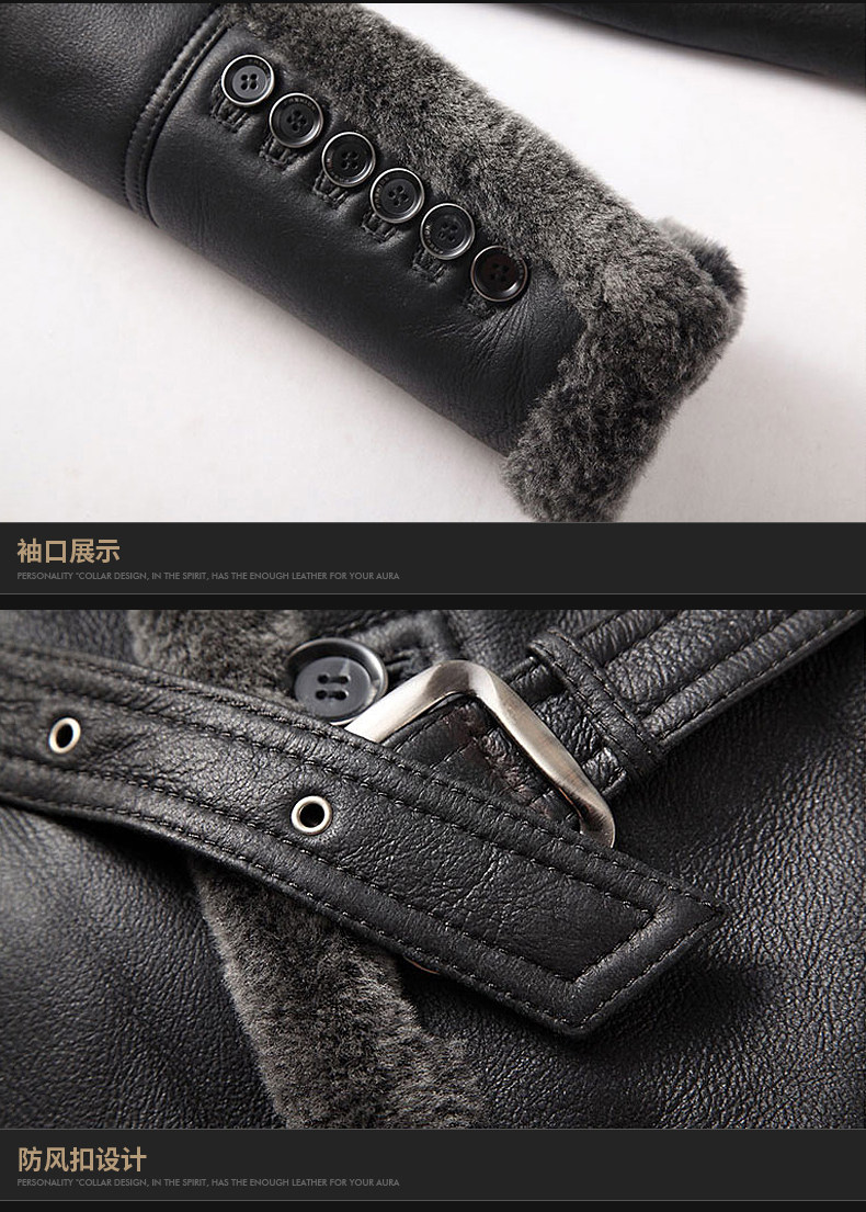 Новое поступление, мужское кожаное пальто с мехом, Мужская Длинная кожаная куртка, двубортные Теплые Куртки из натуральной овчины