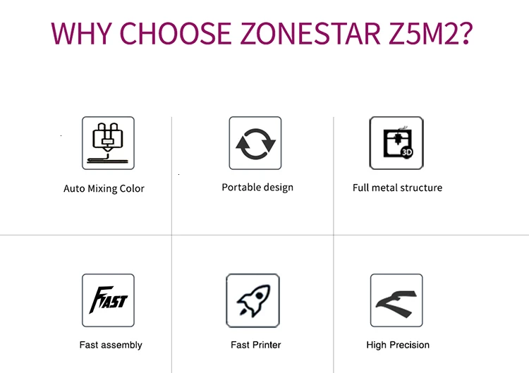 Z5M2: 60% предварительно собранный,Двойной экструдерСмешанный цвет Hotend.