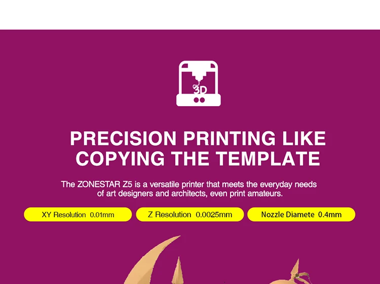 Высокая точность:Механизм привода оси Z сделан из металла, он прочнее и вызывает более высокую точность печати.