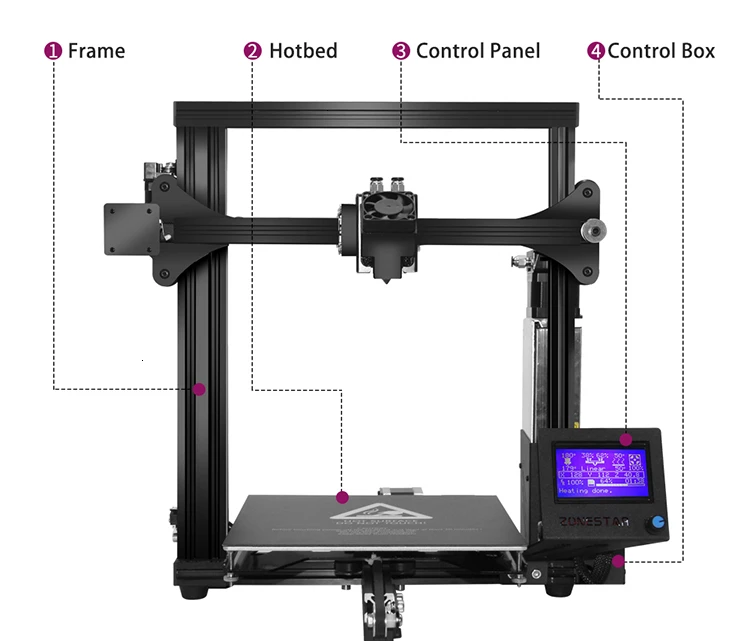Безопасно:Дополнительный выключатель питания переменного тока и установленная пластина, а также металлическая оболочка hotend, пусть этот продукт безопаснее.