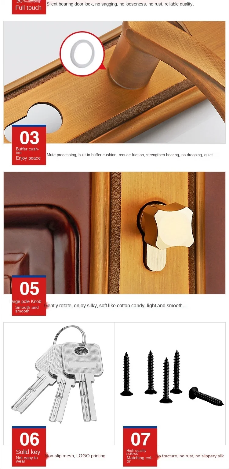 Стальной деревянный дверной замок с подшипником для спальни, внутренний деревянный дверной замок с ручкой, механический аппаратный замок