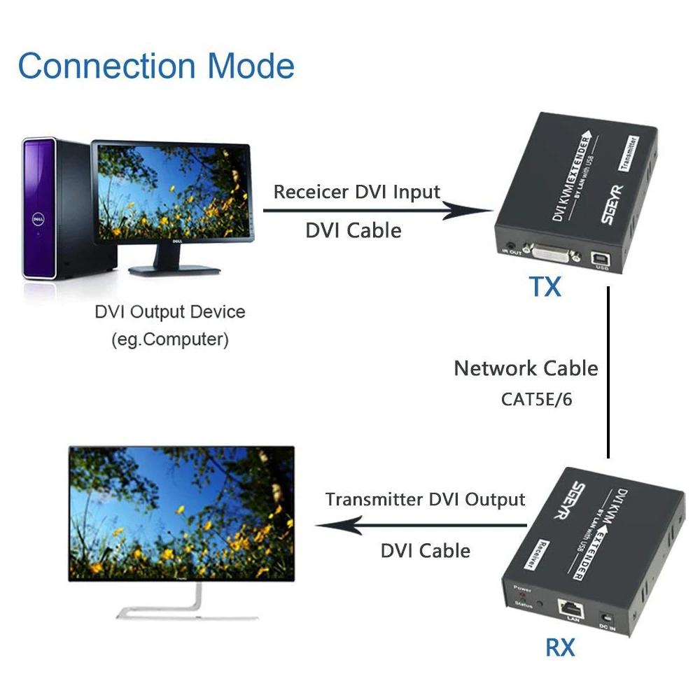 Расширитель DVI KVM 120 м использует Одиночный кабель UTP LAN CAT5e/6 для замены кабеля DVI для достижения дальней передачи, расстояние передачи увеличивается до 120 метров до 1080P. Расширитель DVI 120 м над Cat6 обеспечивает расширение сигналов DVI на большие расстояния над одним кабелем CAT6, он поддерживает высокое разрешение до 1080p и передачу сигнала клавиатуры/мыши. Расширитель DVI Over Cat6 может использоваться для широкого спектра приложений, требующих передачи на большие расстояния с высоким разрешением и высоким качеством благодаря хорошей стабильности и мощной безопасности. В то же время этот расширитель может поддерживать Инфракрасный контроль сигнала, проходящего через.