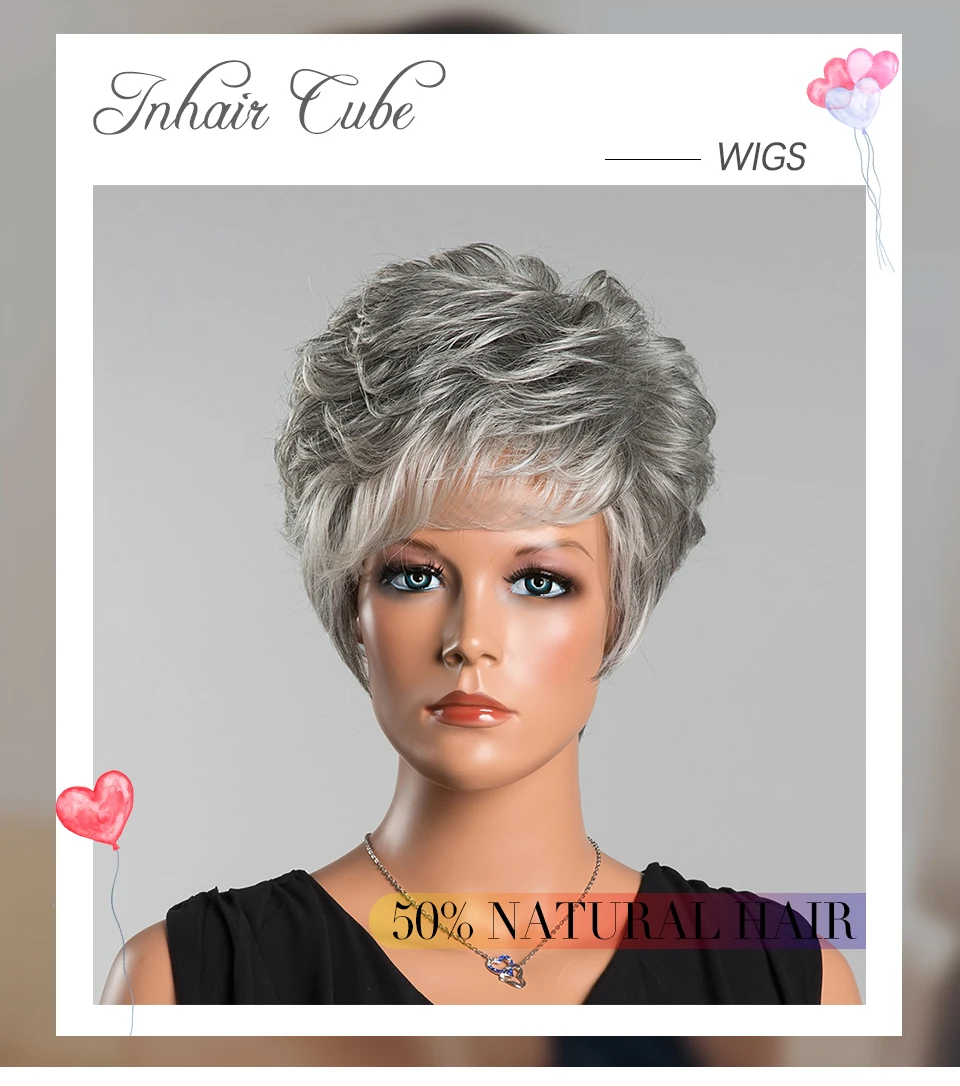 ESIN Женский короткий парик 70% натуральных/30% синтетических волос Стильная