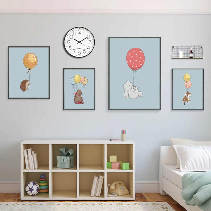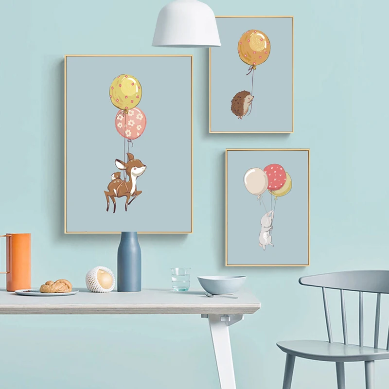 Летающие животные с воздушными шарами, принты, лесные животные, плакат для детской, настенные художественные Детские декоративные картины