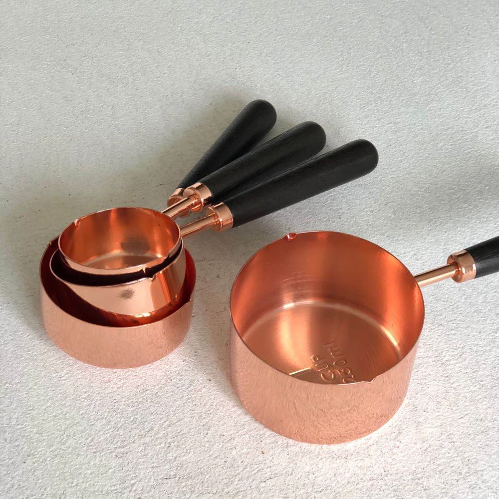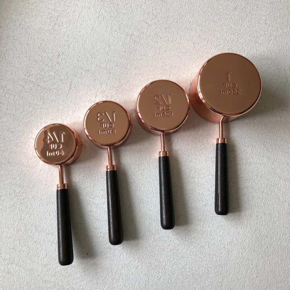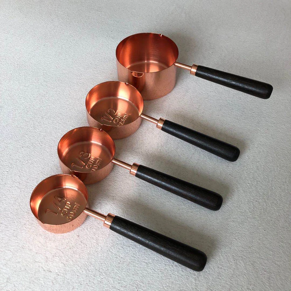 Product description Material: Stainless Steel + Walnut Package Included: 1/4 Cup+1/3 Cup+1/2 Cup+1 Cup Microwave Oven,Toaster Oven, Dishwasher are Not Allowed