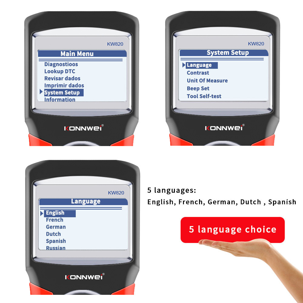 Автомобильный сканер KONNWEI KW820, многоязычный диагностический инструмент OBDII EOBD, считыватель кодов ошибок автомобиля, диагностический сканер на испанском языке