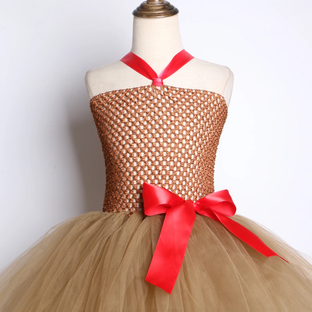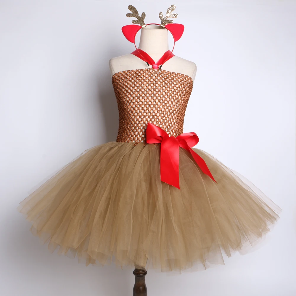 Коричневое платье-пачка с оленем милые животные, костюм на Хэллоуин для детей, праздничное платье для рождества, дня рождения Одежда для девочек От 2 до 12 лет
