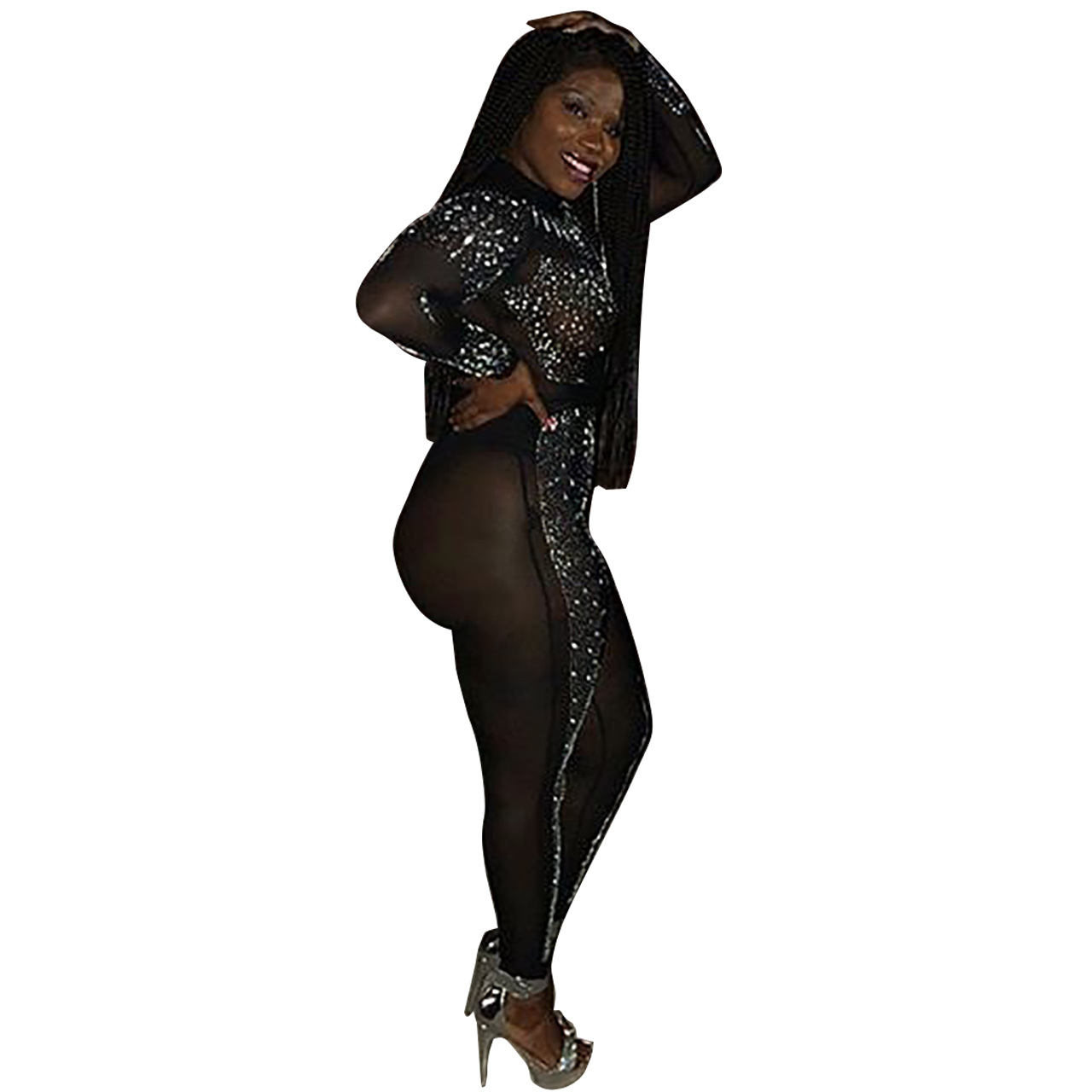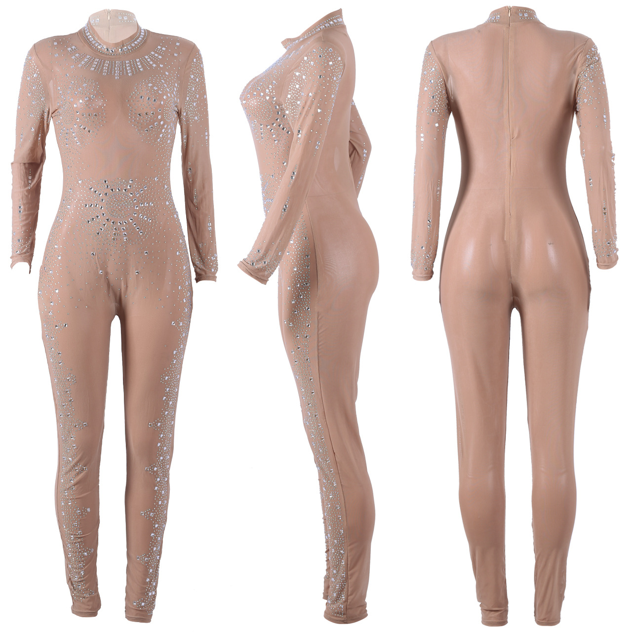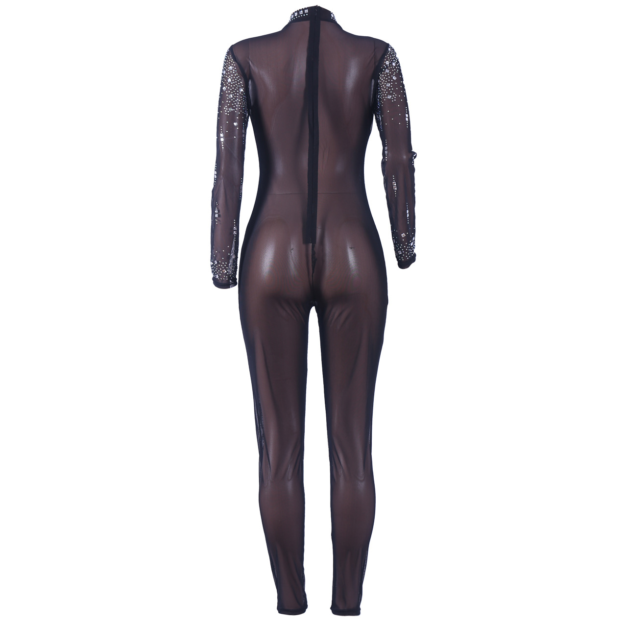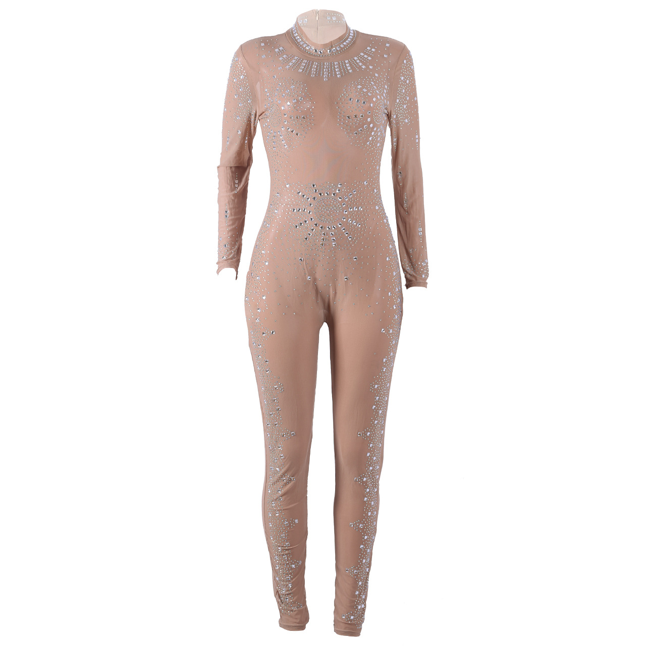 Сексуальный облегающий вечерний комбинезон с длинным рукавом, Женский сетчатый прозрачный комбинезон со стразами и цветочным принтом, клубный комбинезон DC249 <
