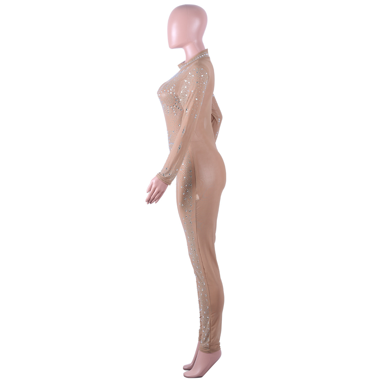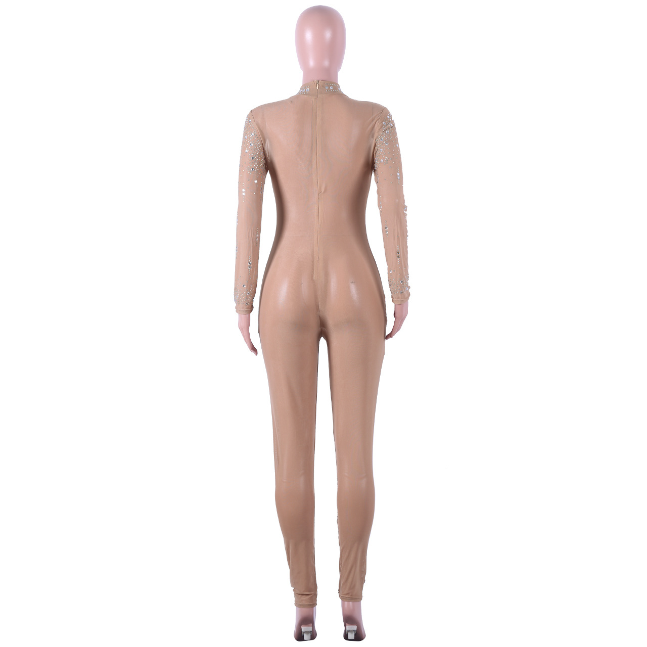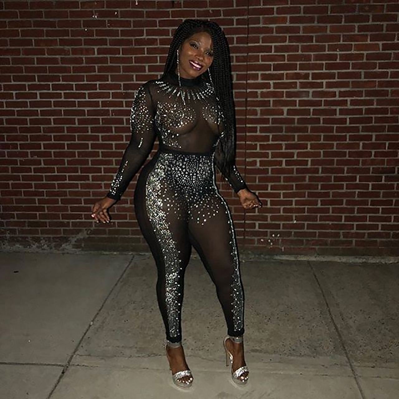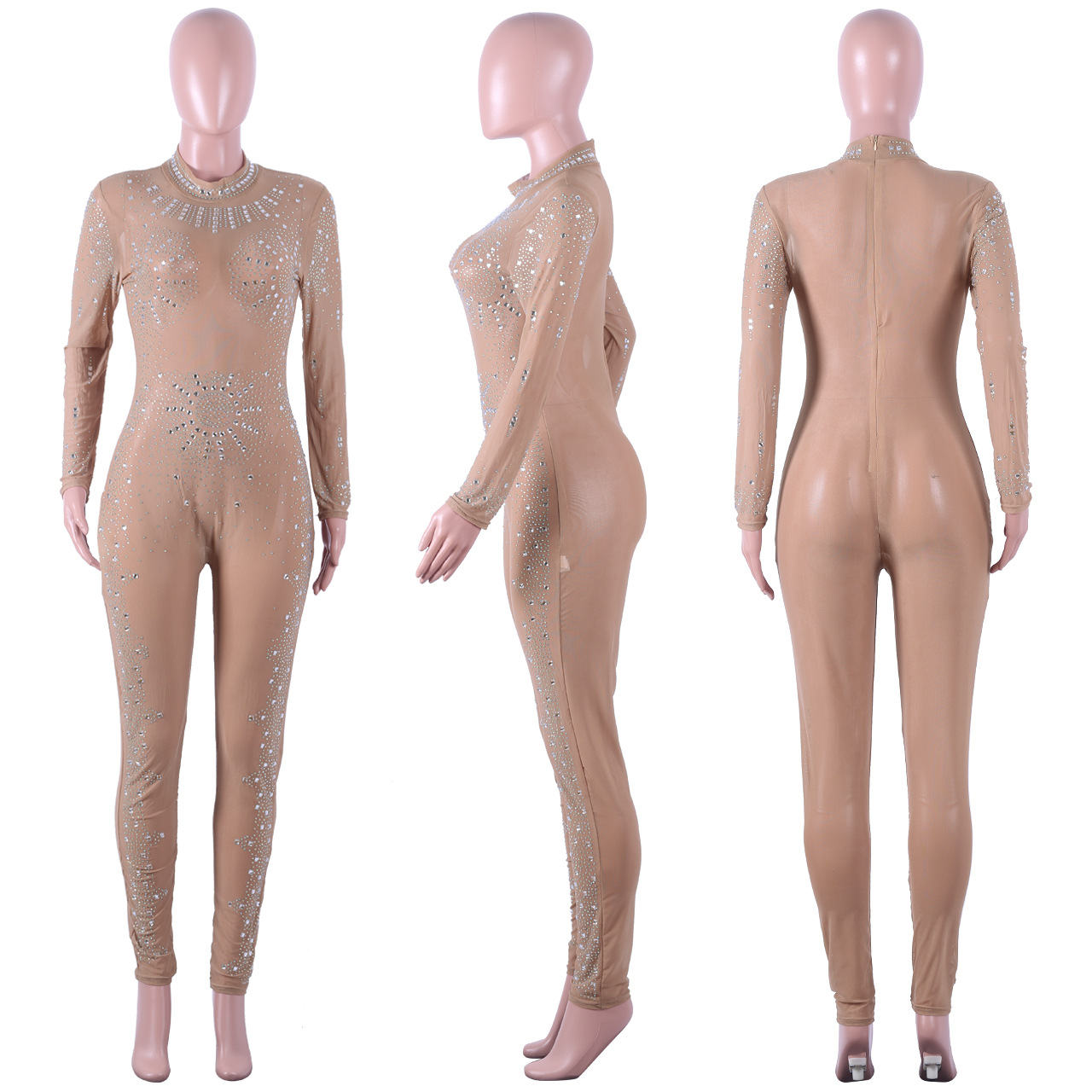 Сексуальный облегающий вечерний комбинезон с длинным рукавом, Женский сетчатый прозрачный комбинезон со стразами и цветочным принтом, клубный комбинезон DC249 <