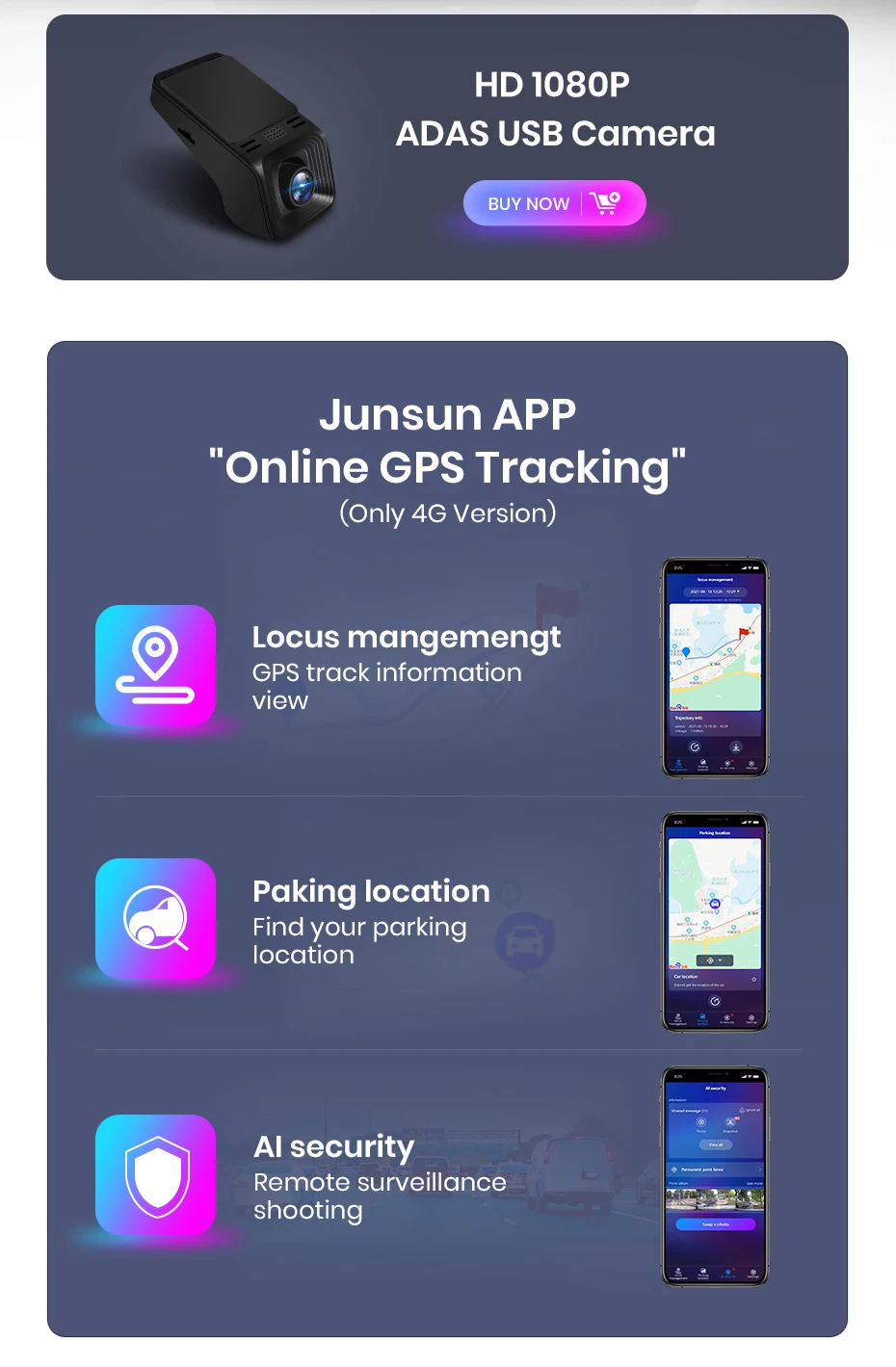 Junsun has pre-installed offline maps and is permanently free to update; And support real-time road conditions when connecting with internet.