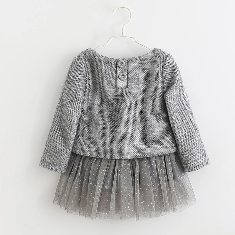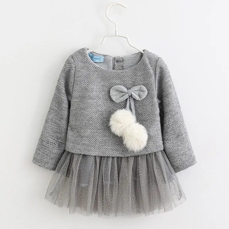 Зима 2019 вязаные детские платья-свитеры с длинным рукавом тюлевые теплые