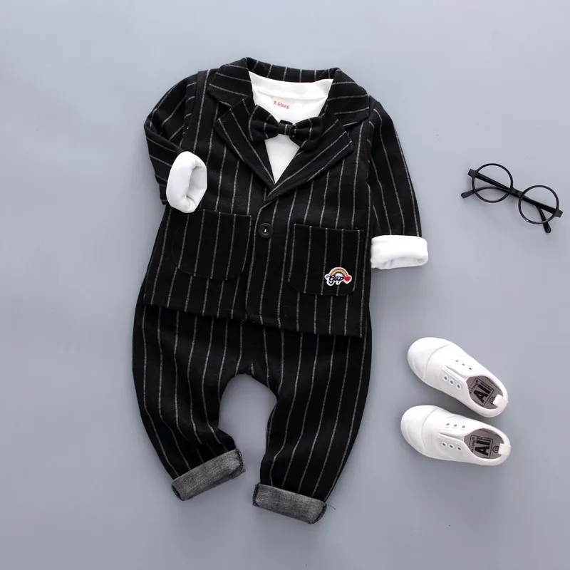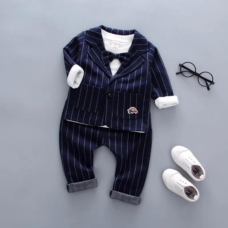 Новинка; Весенний детский блейзер с галстуком; Деловой хлопковый повседневный костюм джентльмена для мальчиков; Куртки; Футболка; Брюки; 3 шт./компл.; Одежда для младенцев в клетку для От 0 до 4 лет