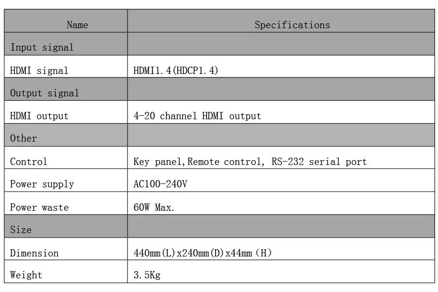 Особенности1. Поддержка 4 канала HDMI1.4 вход переменного тока, максимальное разрешение может достигать 3840*2160 @ 30 Гц или 4096*2160 @ 24 Гц.