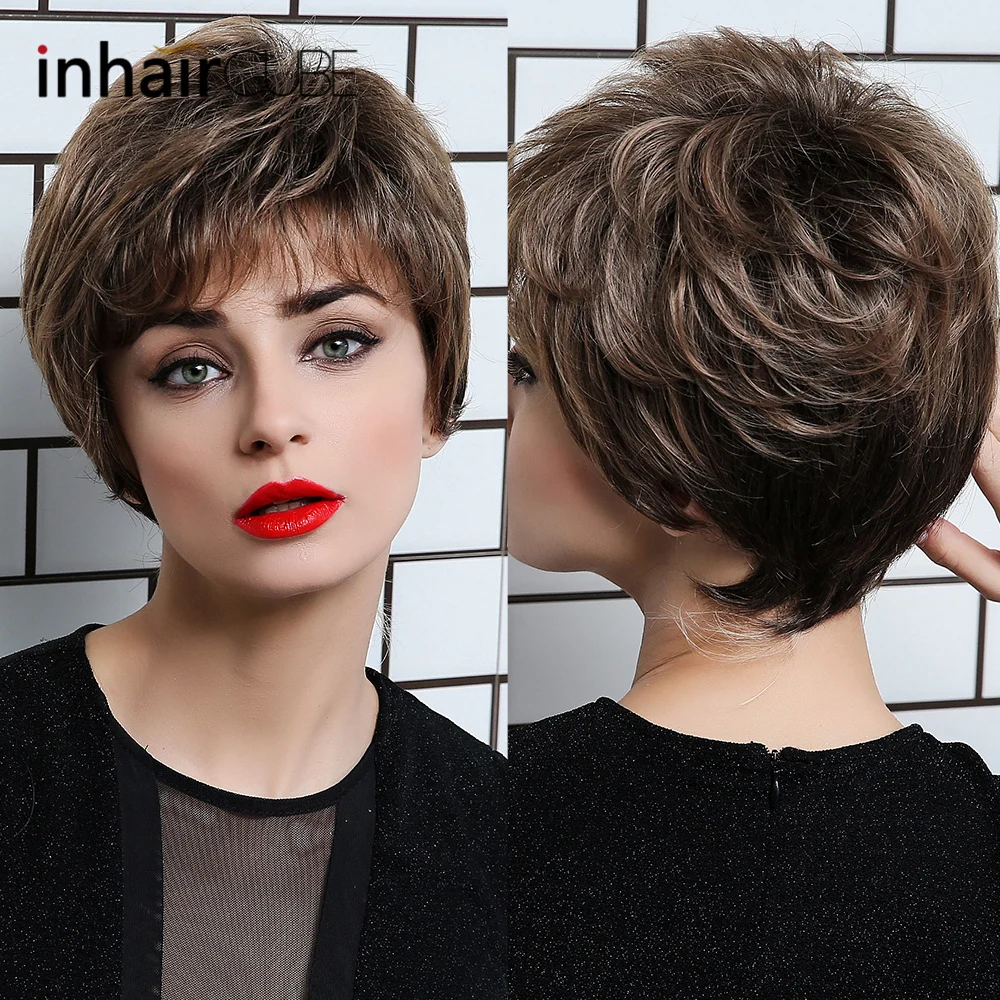 INHAIR CUBE синтетические волосы натуральные прямые короткие парики Многослойные пушистые средние размеры эластичные дышащие парики