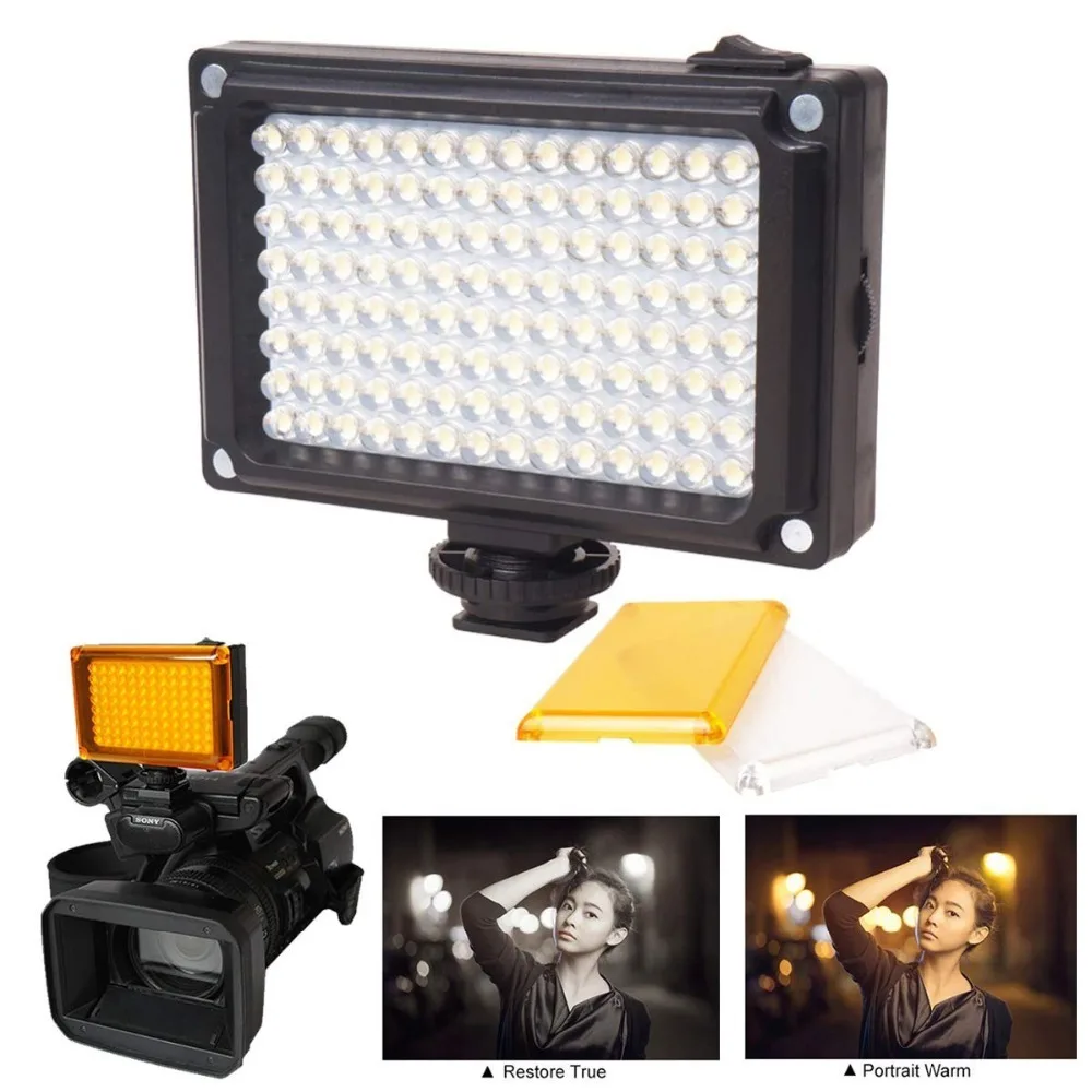 1. Прикрепите белые и желтые фильтры с магнитом и поместите один на заднюю батарейную отсек. 2. Включите indepent выключатель питания и сохраните ту же яркость, когда Включите его снова. 3. Легко взять в карман и светильник для фотосъемки телефона или DSLR камеры Фотография. 4. Alaways используется в свадебной записи 5. Питание от BP-4L аккумулятора или 4 батареек АА (батарея в комплект не входит) 6. Также можно установить на подставку лампы с винтом 1/4" 7. 112 светодиодный луч Максимальная мощность: 9 Вт Светильник источник: 112 светодиодный бусины Угол яркости: 120 ° Материал корпуса: АБС-пластик Цветовая температура: 5500K (3200k с фильтром) Световой поток: 860лм Размер: 70 мм x 30 мм x 100 мм Вес: 129 г Дружеские советы: 1 usb-порт только для зарядки! Не включайте светильник напрямую с помощью usb-кабеля, иначе это повлияет на срок службы светильник! И если вы хотите использовать USB, сначала поместите совместимый BP-4L батарею в светильник (не может поддерживать Аккумуляторы AA). 2. Может работать с камерой Sony, но сначала вам может потребоваться приобрести мини-Горячий башмак отдельно. 1x 112 светодиодный светильник для видеосъемки 1 переносная сумка 1x Желтый фильтр 1x белый фильтр Примечание: батарейки не входят в комплект поставки!