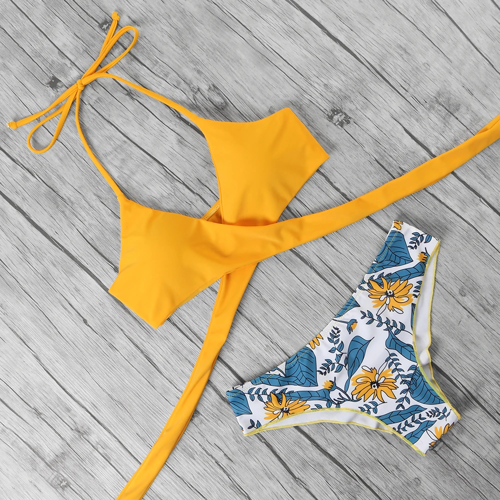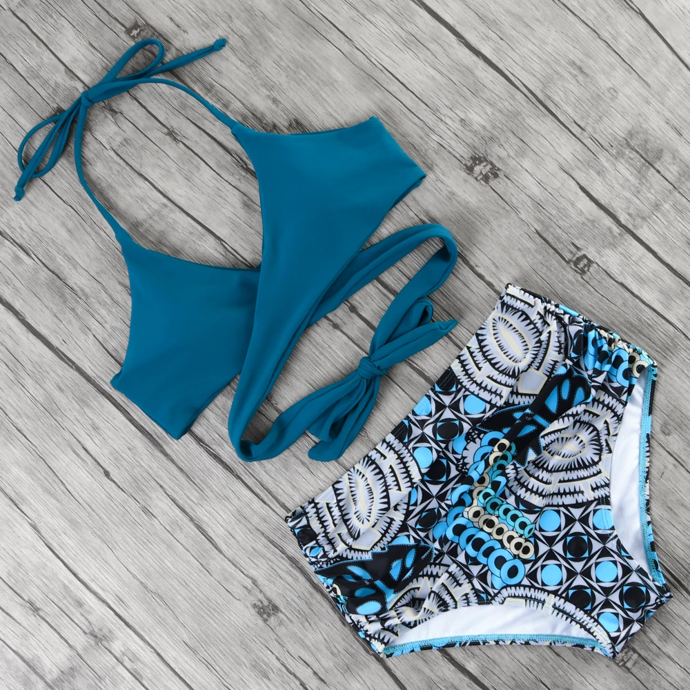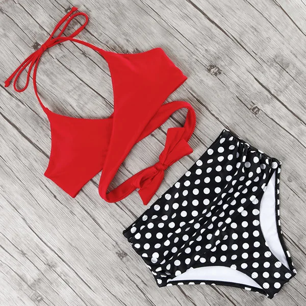 Купальник бикини с вырезом женский купальник бандо высоким купальный костюм пуш
