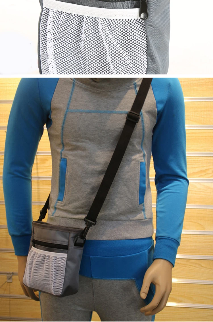 Два кармана на молнии могут держать небольшой набор ключей, кредитных карт, денег, мешков для отходов или вашего мобильного телефона. Основной чехол на молнии достаточно большой, чтобы держать новейшие сотовые телефоны (iPhone 6, Samsung S5). Несмотря на то, что он не закрывается на большие телефоны, они хорошо сидят и легко снимаются. D-образные кольца используется для крепления тренировочного кликера, ключей или даже для привязки к ним мешка для отходов.