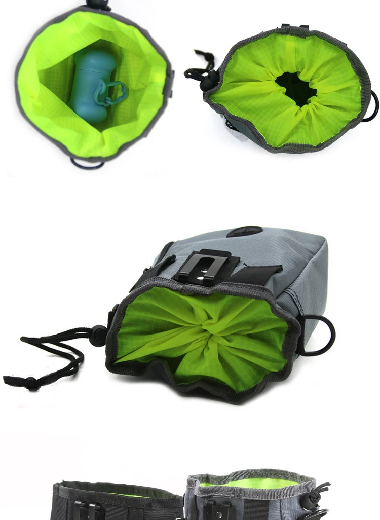 Яркий зеленый материал для вместительного основного отсека обеспечивает большую контрастность, так что вы сможете легче видеть ваши лакомства, позволяя вам быстрее наградить Вашего щенка. Застежка на шнурке широко открывается и плотно прилегает. Используйте его для лакомств или маленьких игрушек (теннисный мяч, кости и т. д.)