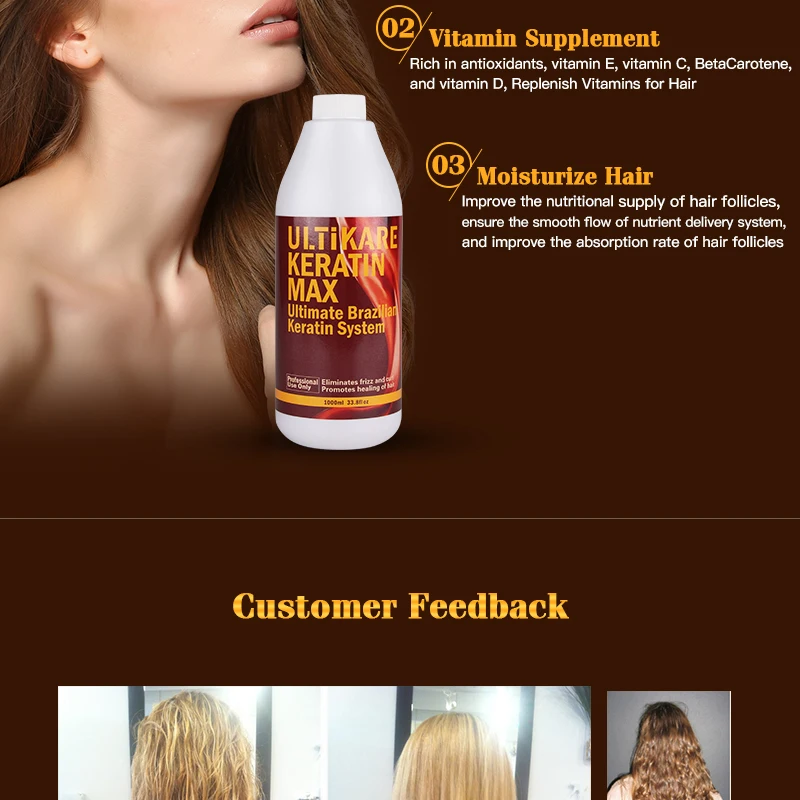 Метод 1: Используйте разное содержание кератина формалина для различных вьющихся волос и поврежденных волос.