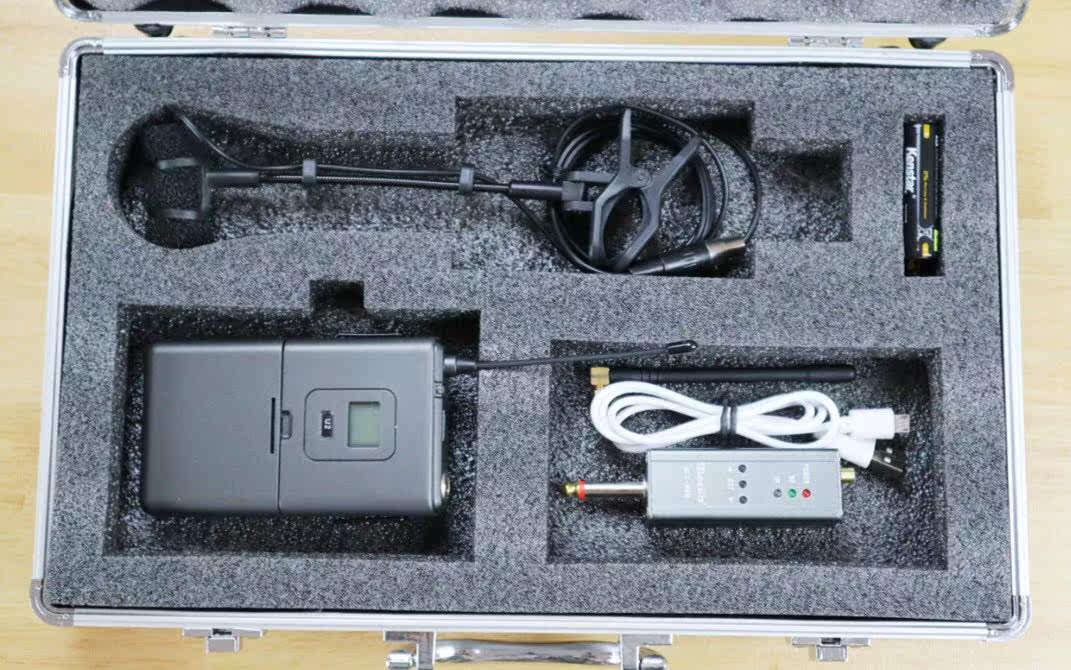 Профессиональный емкостный микрофон, хорошее качество звука, частота ИК-пары, 300 частота регулируется, стабильность сигнала, беспроводное расстояние около 70 метров, небольшой размер, легко носить с собой, распределительный чемодан из алюминиевого сплава.