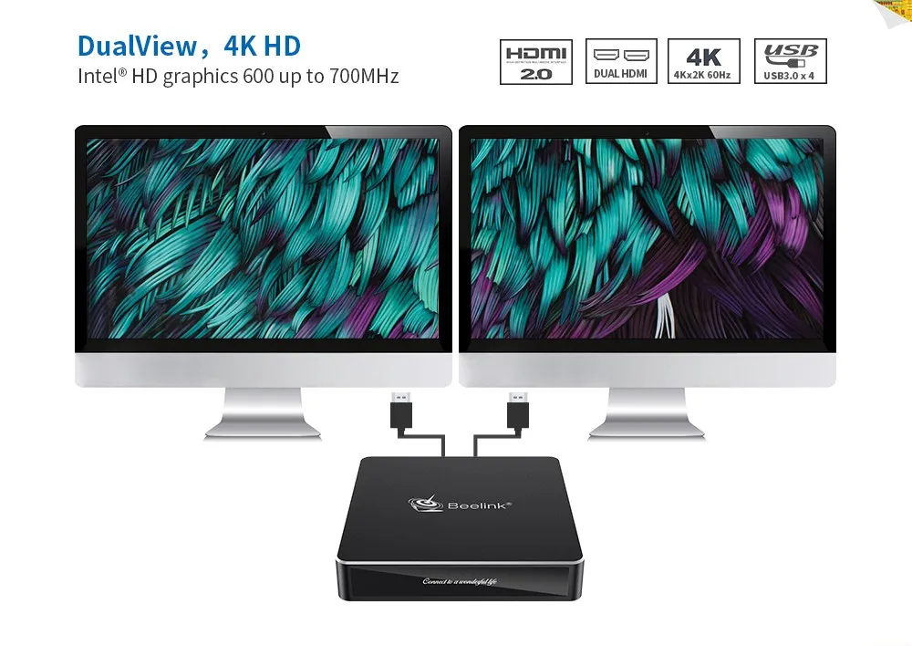 | Посылка содержание | 1 х мини-ПК, 1 х адаптер питания, 1 х кронштейн, 2 х HDMI кабель, 1 х сумка винтов, 1 х английское руководство |