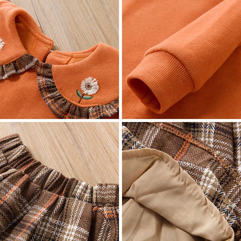 Элегантное осеннее платье принцессы для девочек Вязаный костюм для девочек клетчатые куртки с длинными рукавами + костюмы с платьем милая детская одежда платье из 2 предметов