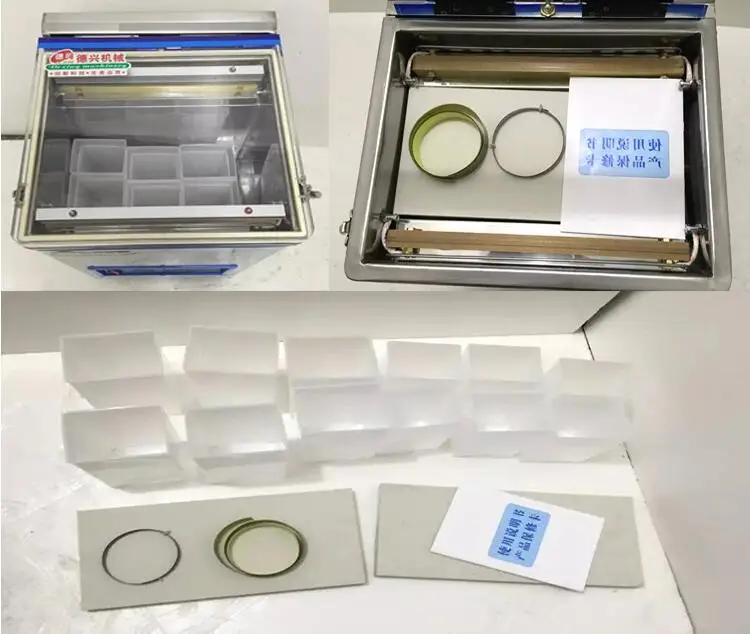 Параметры: Модель: SU-600 Количество вакуумных насосов: 2x2,0 л Рабочее напряжение: 220 В переменного тока/50 Гц-110 В/60 Гц Мощность вакуумного насоса: 780 Вт Мощность теплоизоляции: 700 Вт Время работы вакуума: 25 с (регулируется) Время охлаждения: 3 с (регулируется) Размер вакуумной камеры: 320x220x320 мм Размер уплотнения: Длина 320 мм x ширина 10 мм Размеры: 390x450x700mm Уплотнительная лента: 2 Вес: 50 кг Эксплуатация: 1. Подключите питание, поверните выключатель питания 2. В соответствии с различной толщиной полиэтиленового пакета установите время вакуумного запечатывания на панели управления. 3. Упаковка продукта, которую вы хотите выровнять сверху герметизирующие ленты 4. Нажимная пластина покрыта оргстеклом (Примечание: При вакуумной упаковке, фиксируемой с обеих сторон, Застежка не предусмотрена) 5, машина будет автоматически сосать крышка из оргстекла, вакуум-закаточная машина будет автоматически включается после того, как крышка из оргстекла Характеристики станка: Аппарат представляет собой идеальную зеркальную нержавеющую сталь, простой и элегантный внешний вид, микрокомпьютерное умное управление, прозрачное стекло, процесс упаковки с взглядом. Двойной вакуумный насос (1.8Lx2) конфигурация для более быстрого вакуумного цикла, прочный, Герметичный вакуумный насос с полным и простым в эксплуатации. Эта машина имеет передовую конструкцию, полнофункциональную, надежную производительность, хорошую прочность на уплотнение, высокую упаковочную способность, экономичную эффективность. Емкость упаковки и Упаковочная продукция: В то же время 14 пакетов 7 г упаковка продукта, 6 пакетов 500 г продуктов, 6 пакетов 250 г продуктов, 3 кг продуктов могут быть упакованы, в зависимости от различных продуктов. Коробочные продукты могут упаковываться в рис, чай, пищу, медицину, lo, фрукты, овощи, гранулированные, порошковые, блокирующие вечеринки и другие неправильные формованные вакуумные упаковочные продукты в зависимости от веса предметов. Герметичная упаковка для вакуумной прокачки, может эффективно предотвратить гниние и ухудшение пищевых продуктов, Сохранить Свежие продукты, продлить время хранения пищи.