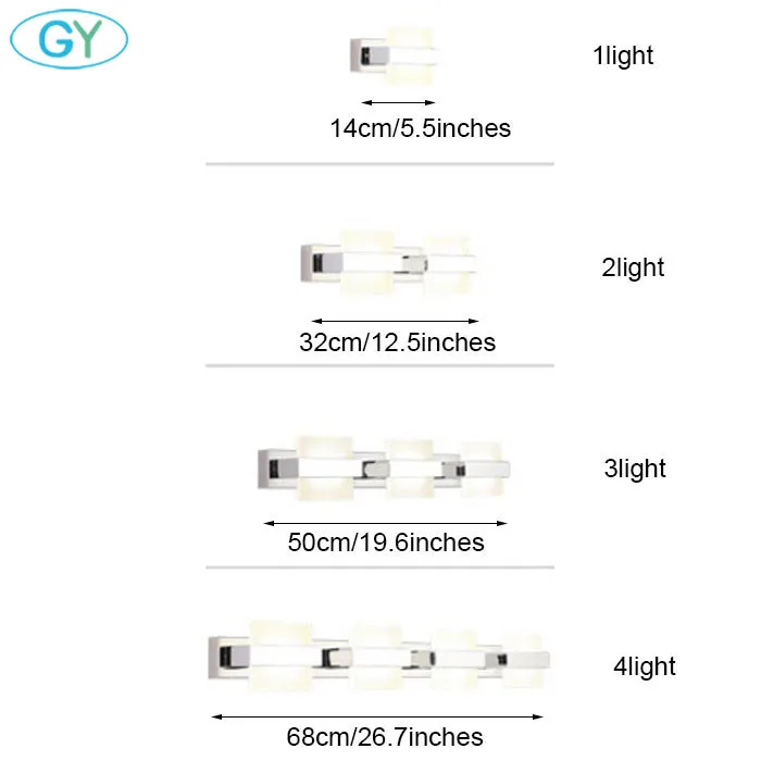 Материалы: нержавеющая сталь, акрил Входное напряжение: 110-240 В переменного тока 50/60 Гц Источник света: светодиодный Светодиодный индикатор включает или не включает: Потребляемая мощность: 6/12/18/24 Вт Способ крепления: настенный Режим управления: настенный выключатель Площадь освещения: 10 м ^ 2 до 25 м ^ 2