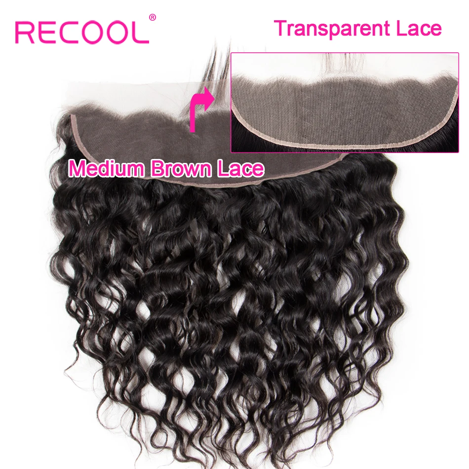 Recool Brazilian Water Wave HD Transparent Lace Frontal Closure With Baby Hair Ear To Ear Pre Plucked Human Hair Lace Frontal