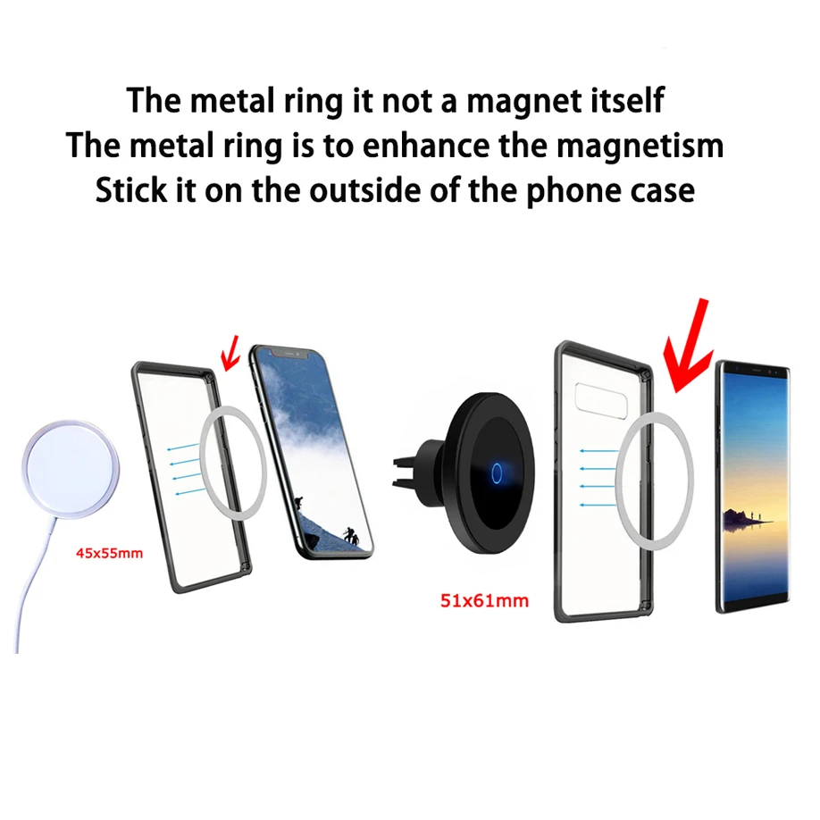 Металлическое кольцо не является магнитом. Металлическое кольцо для усиления магнетизма, просто Наклейте этот продукт на чехол для телефона.