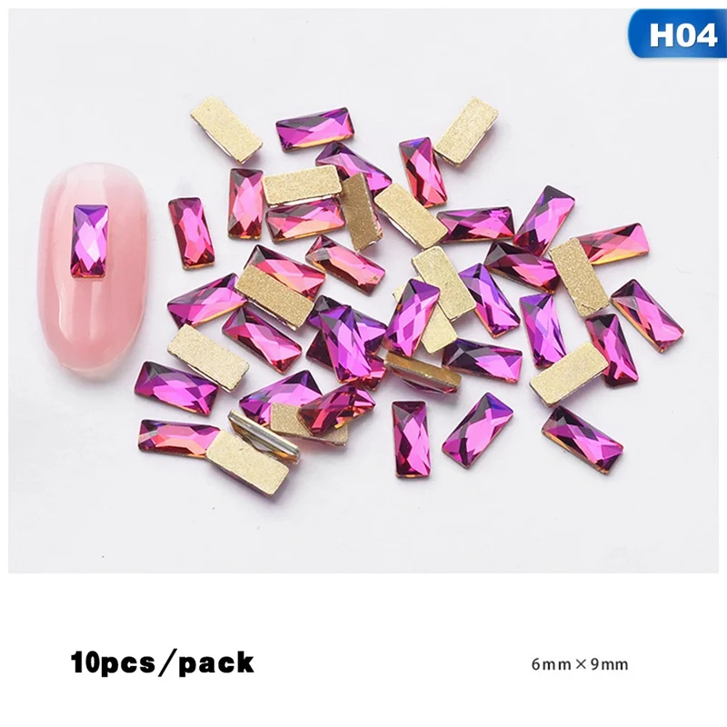 Спецификация: Упаковка: 10 шт./лот Цвет: 9 цветов Размер: 5 мм x 10 мм Форма: прямоугольник Посылка: 10 шт. Стразы для дизайна ногтей Характеристика: 100% новый и высокое качество Украшение для ногтей Очистите поверхность ногтей, почистите Базовый лак и поместите его на ногти Вы также можете использовать их, чтобы украсить ваш дом, чехол для мобильного телефона, очки, сделанную карточку, боди-арт и т. д.