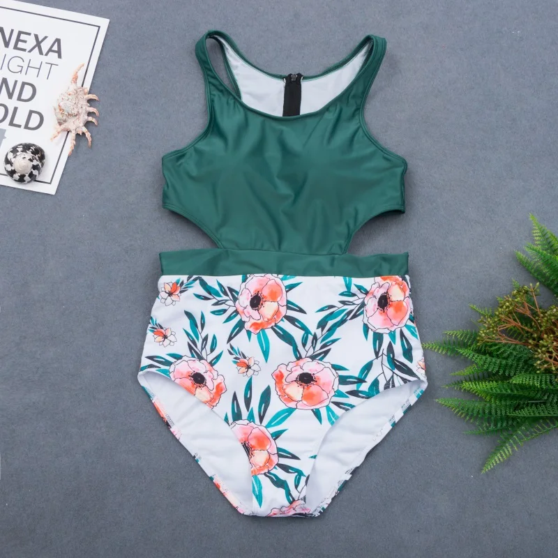 Сексуальный бандажный цельный купальный костюм с цветочным принтом для женщин 2018 с открытой спиной Монокини пуш-ап купальный костюм трикини с высоким вырезом купальный костюм XL